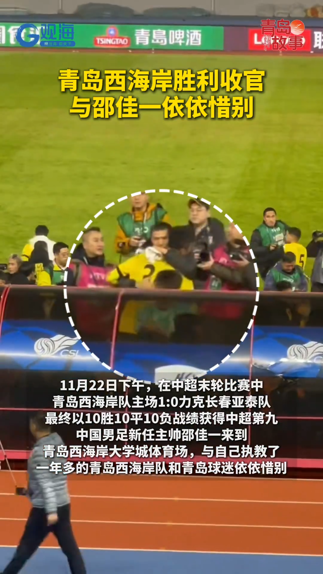 青岛西海岸胜利收官,与邵佳一依依惜别
