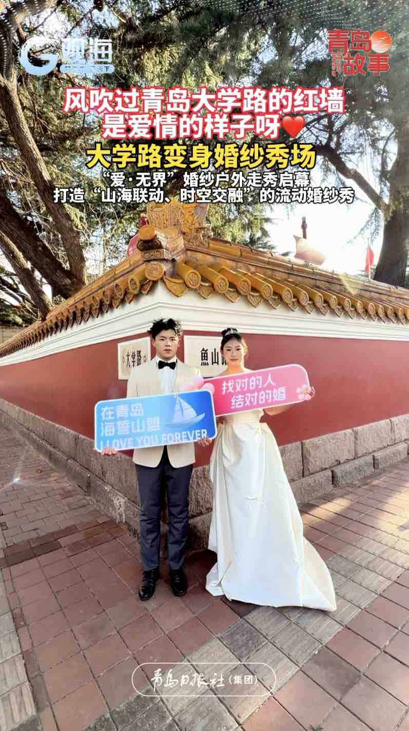 风吹过青岛大学路的红墙,是爱情的样子呀!