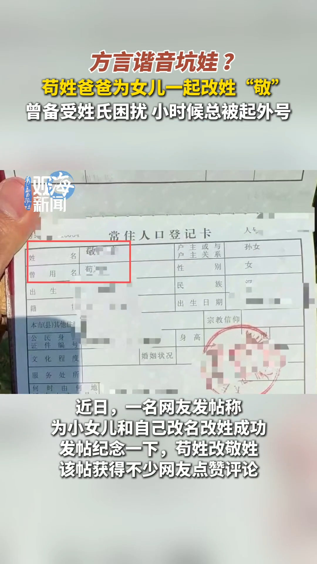 方言谐音坑娃?苟姓爸爸为女儿一起改姓“敬”