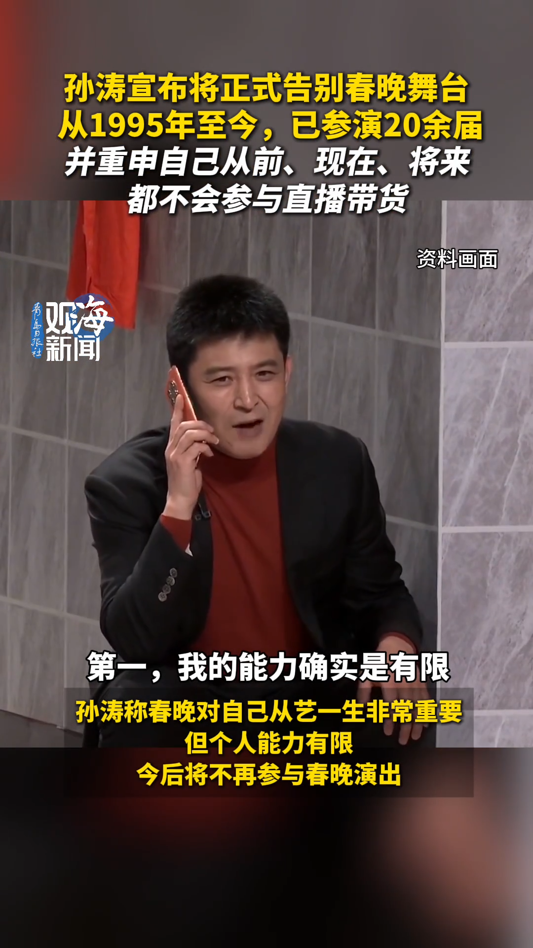 孙涛宣布将正式告别春晚舞台,并重申自己从前、现在、将来都不会参与直播带货