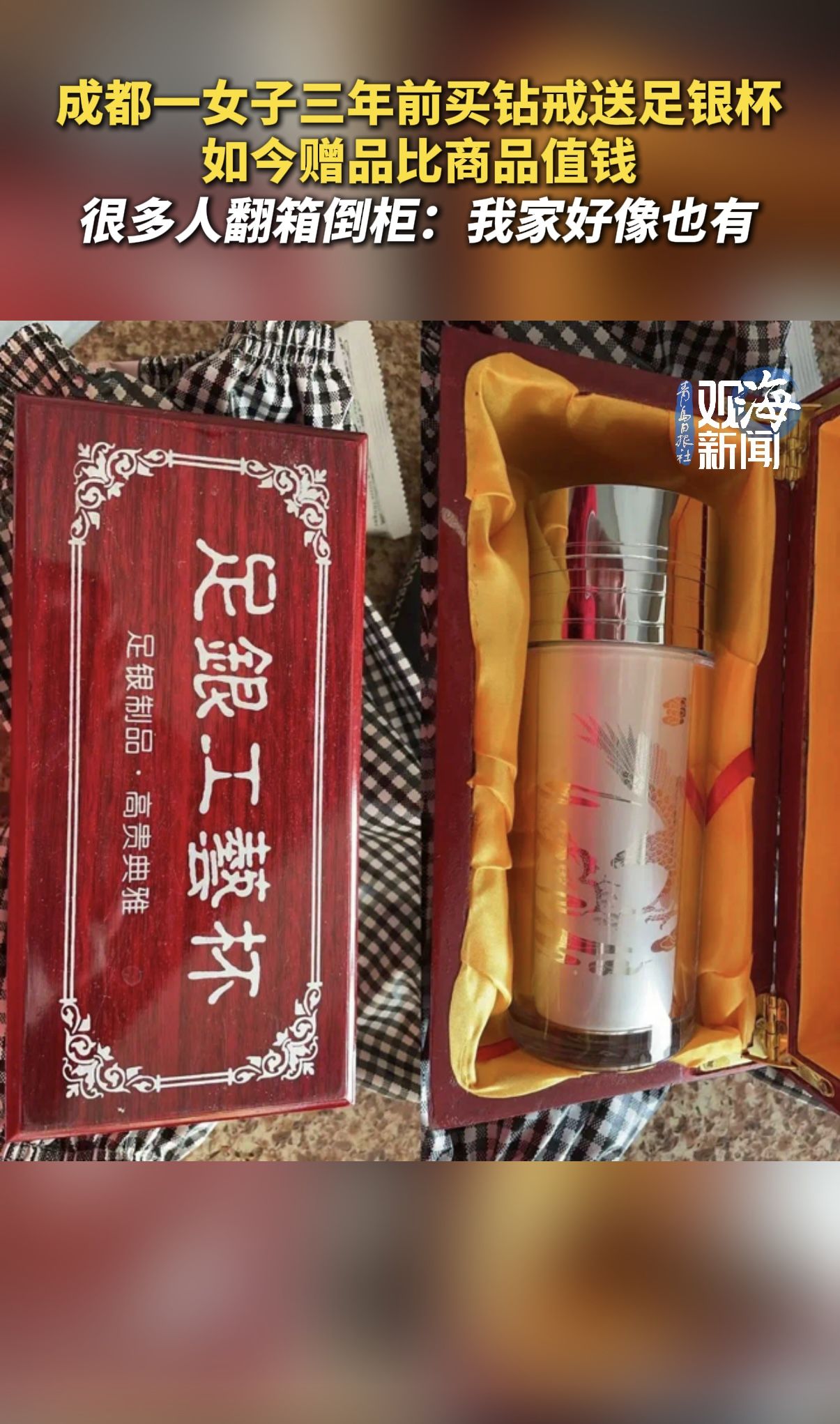 成都一女子三年前买钻戒送足银杯,如今赠品比商品值钱
