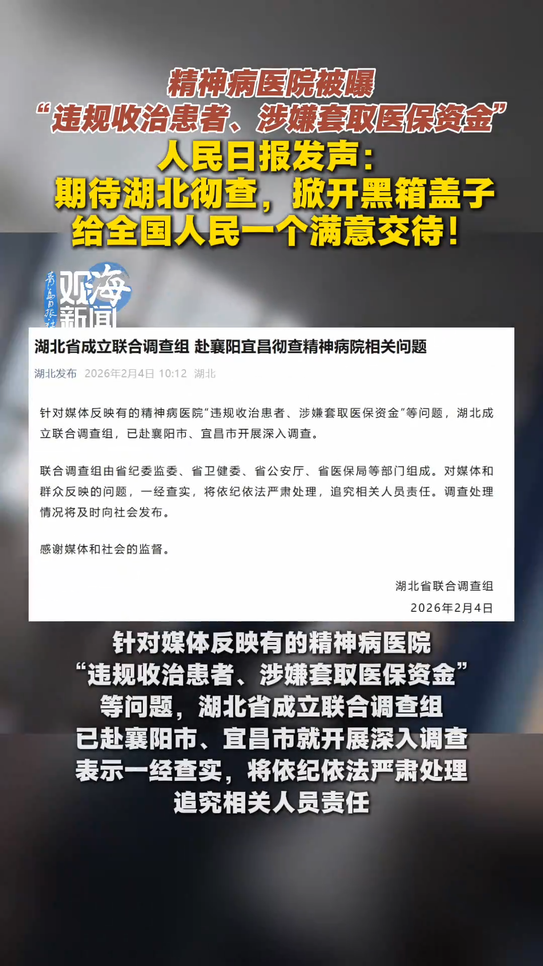 精神病医院被曝“违规收治患者、涉嫌套取医保资金”,人民日报发声