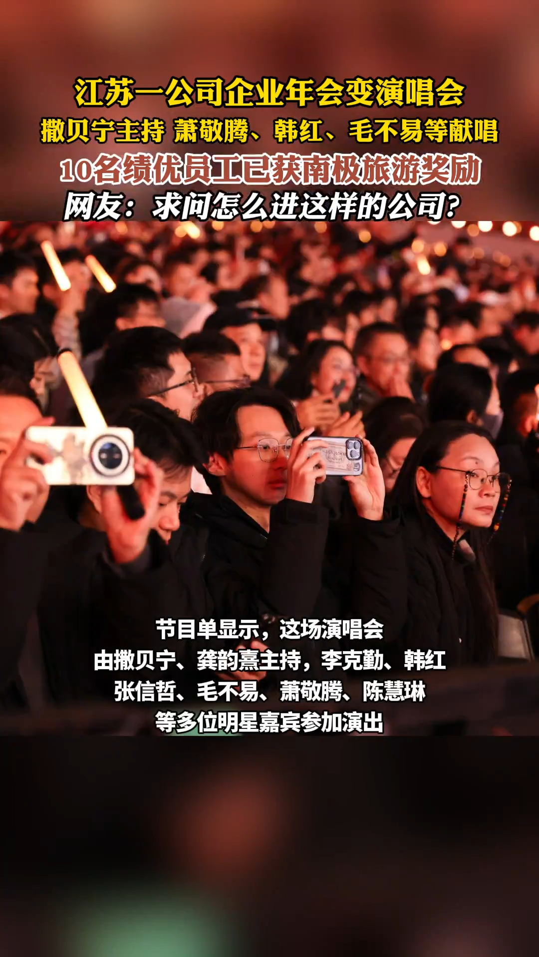 江苏一公司企业年会变演唱会,萧敬腾、韩红、毛不易等献唱