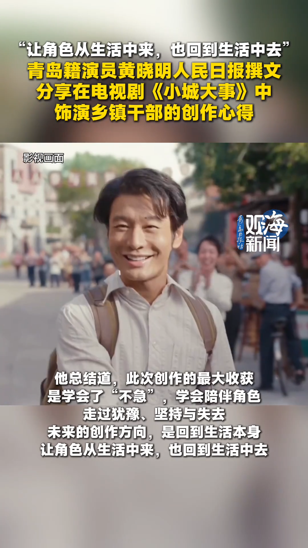 “让角色从生活中来,也回到生活中去”,青岛籍演员黄晓明人民日报撰文