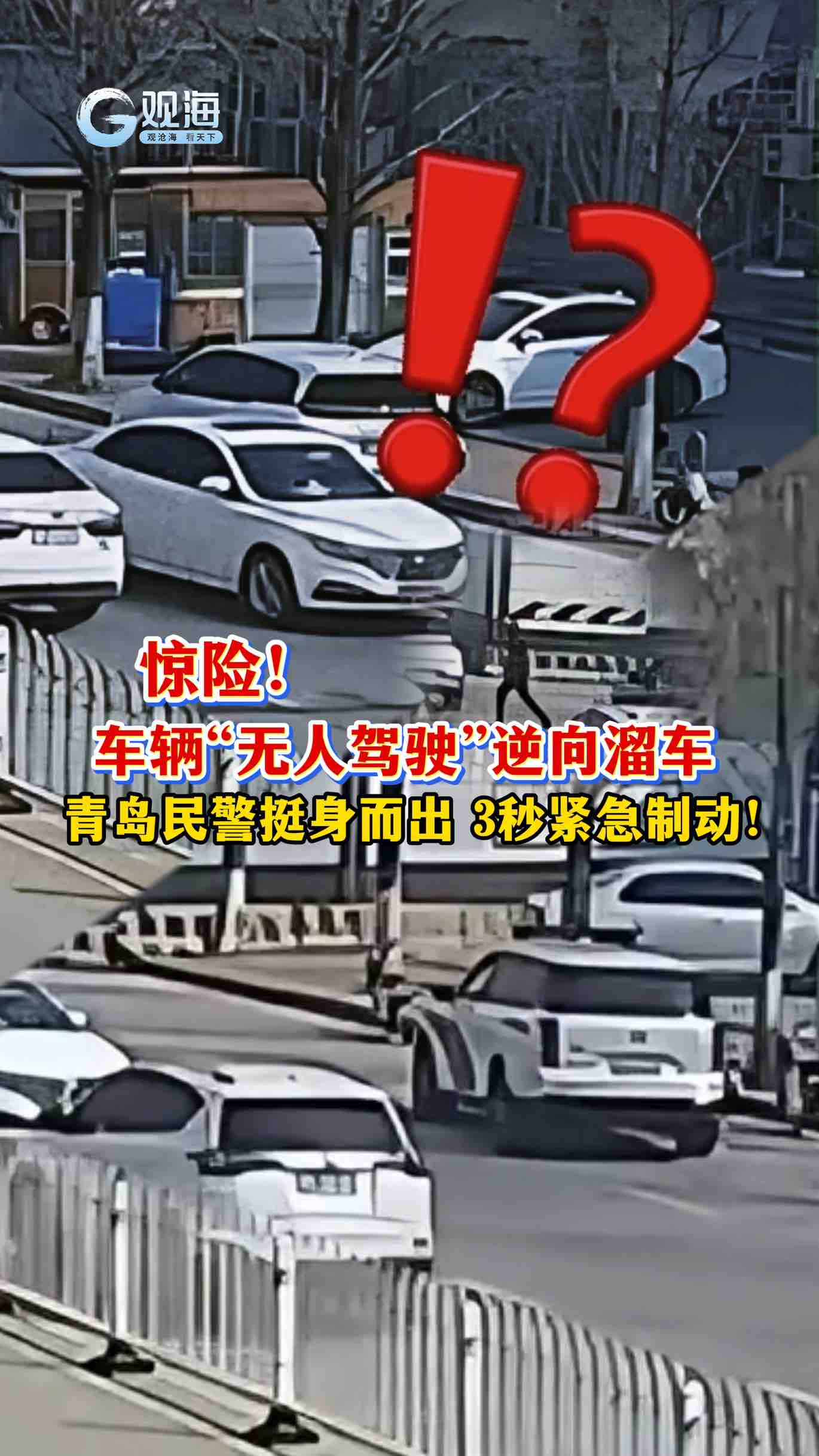 惊险!私家车“无人驾驶”逆向溜车,青岛民警3秒紧急制动!