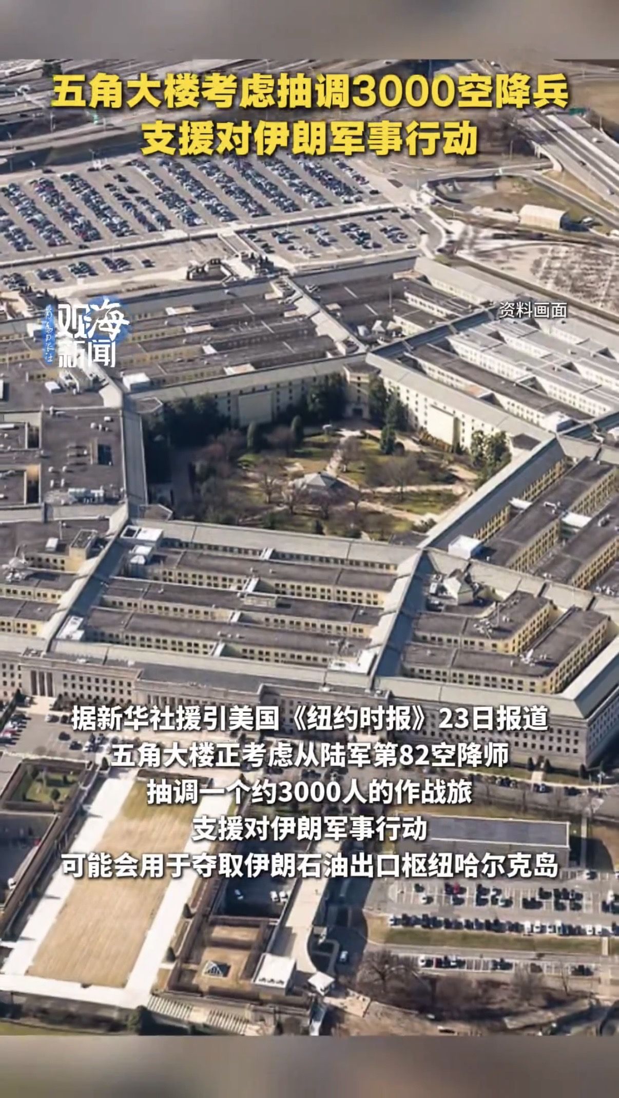 五角大楼考虑抽调3000空降兵,支援对伊朗军事行动