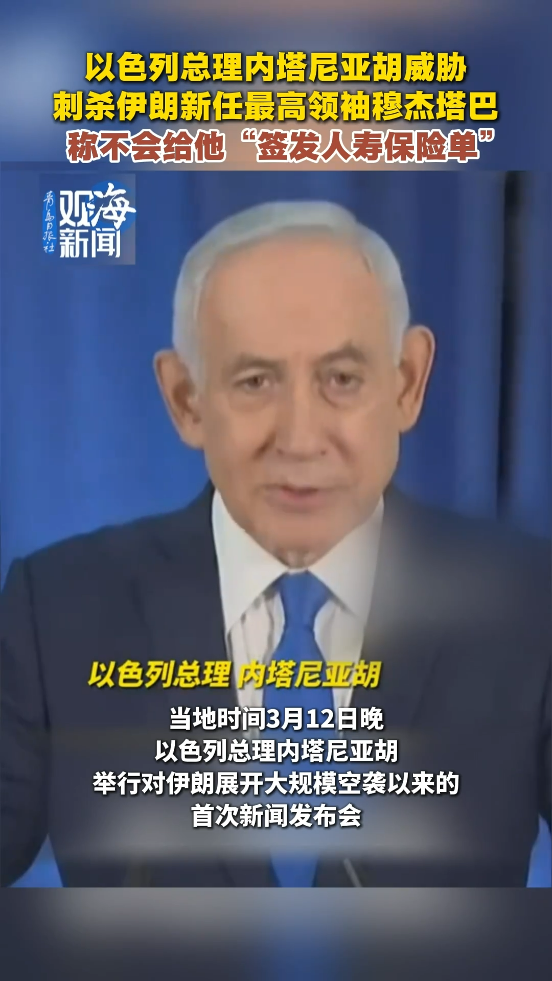 以色列总理内塔尼亚胡威胁刺杀伊朗新任最高领袖穆杰塔巴