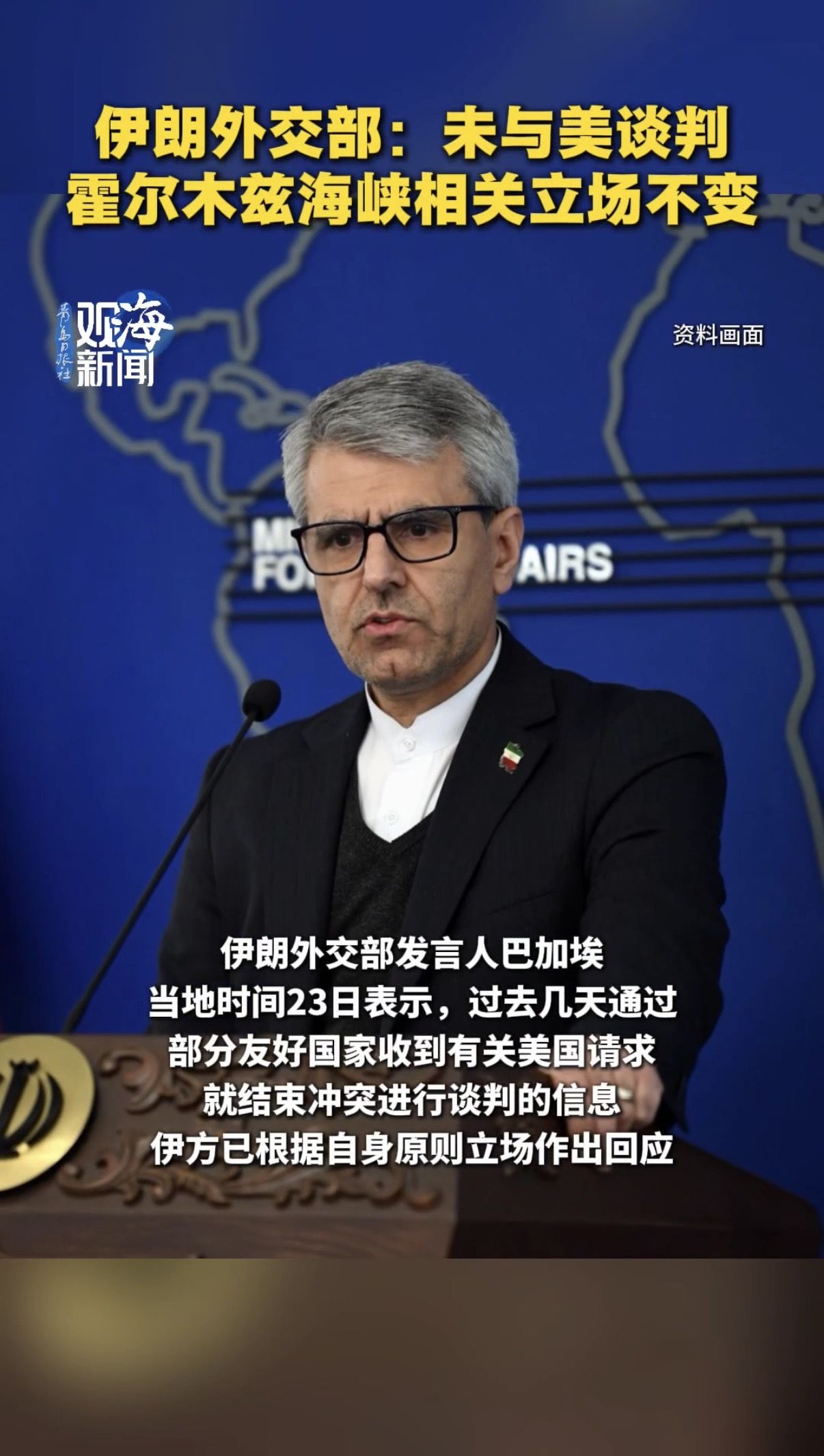 伊朗外交部:未与美谈判,霍尔木兹海峡相关立场不变