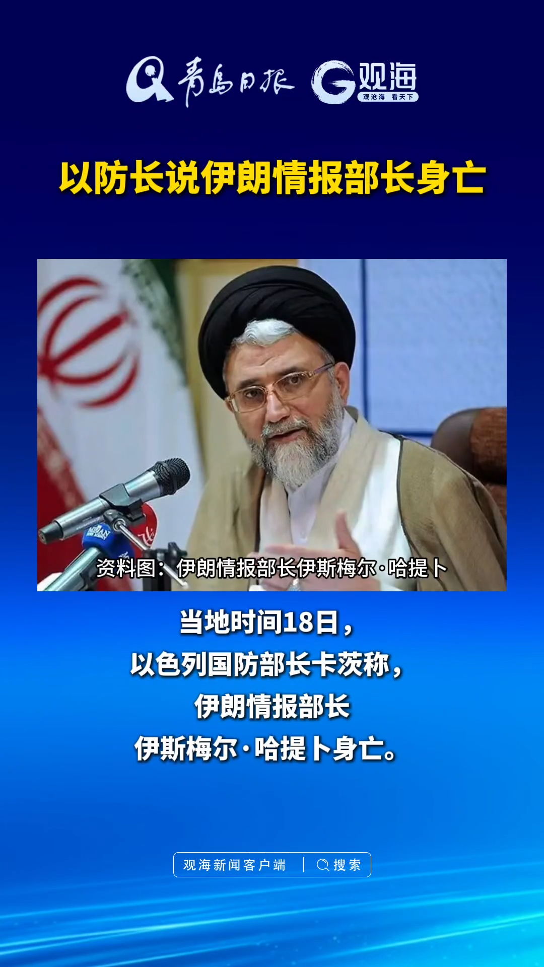 以防长称伊朗情报部长身亡