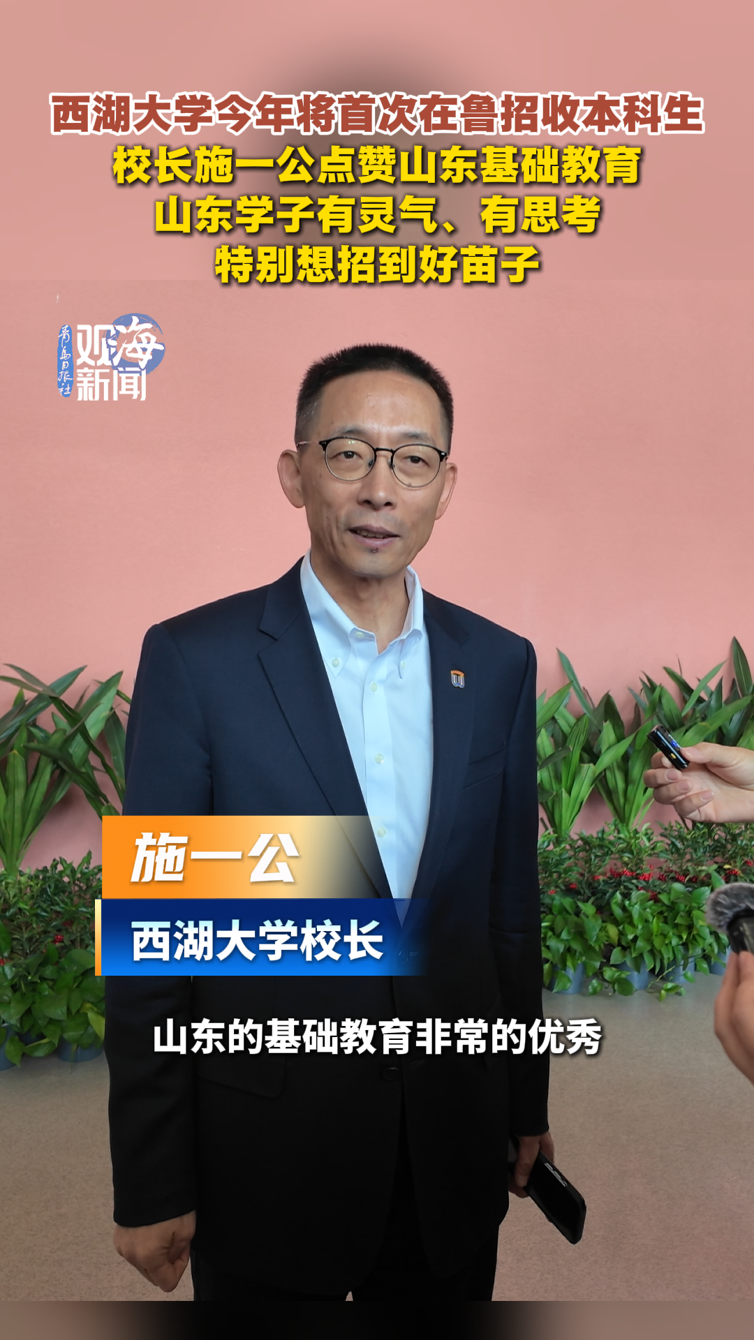 西湖大学今年将首次在鲁招收本科生,校长施一公点赞山东基础教育