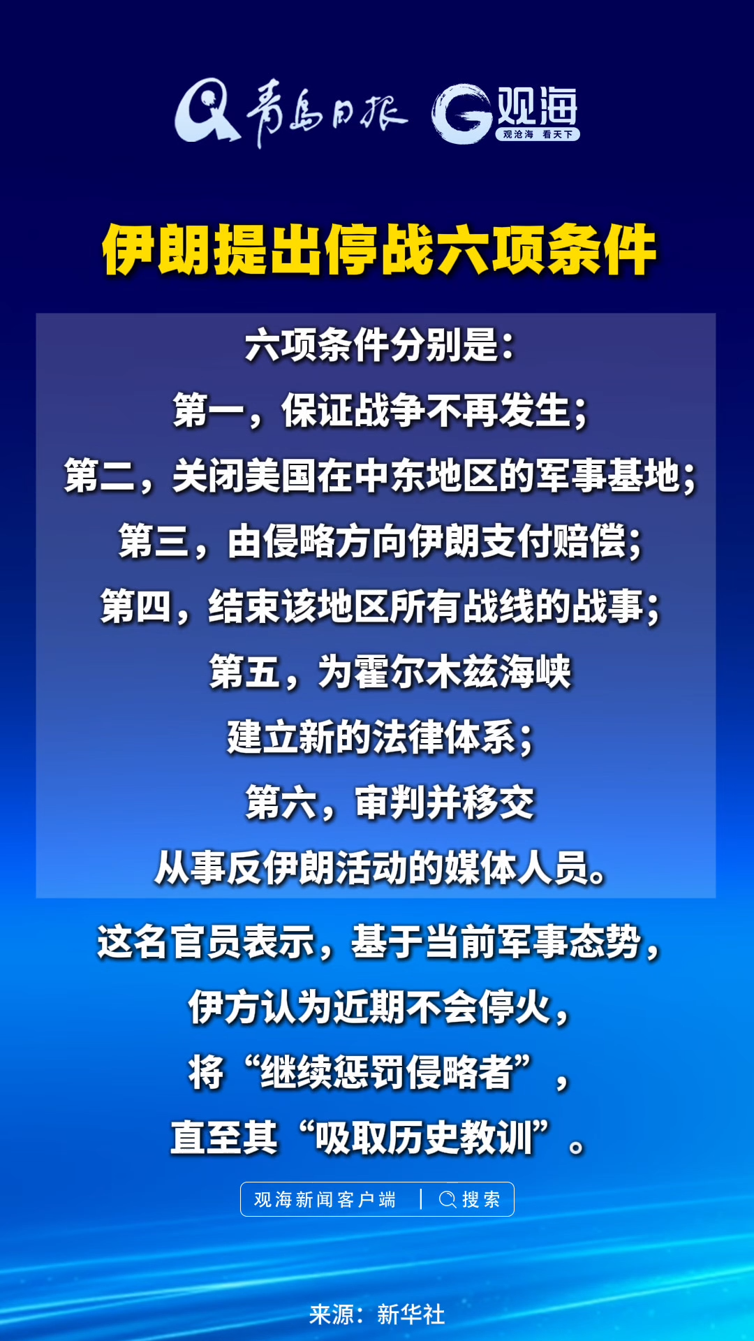 伊朗提出停战六项条件
