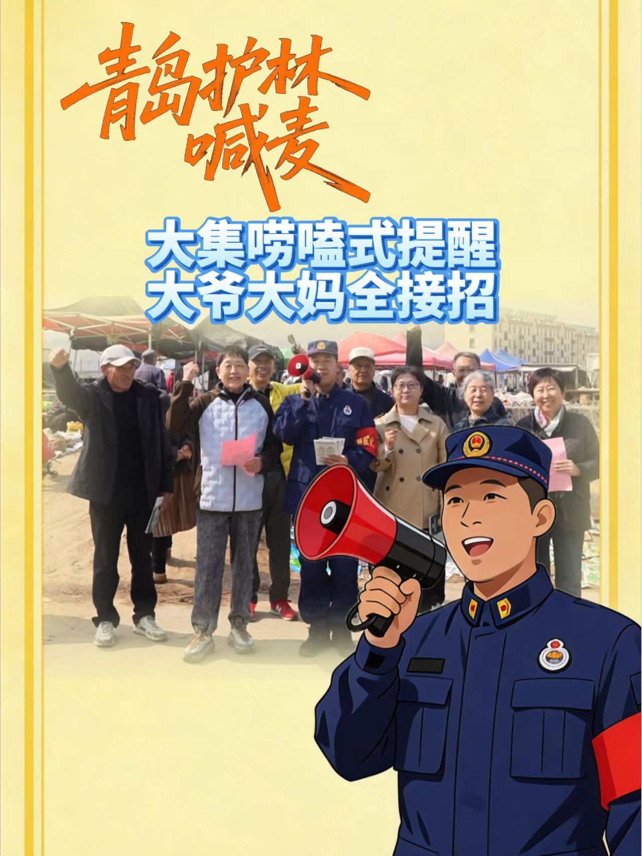 青岛护林喊麦②丨大集唠嗑式提醒,大爷大妈全接招