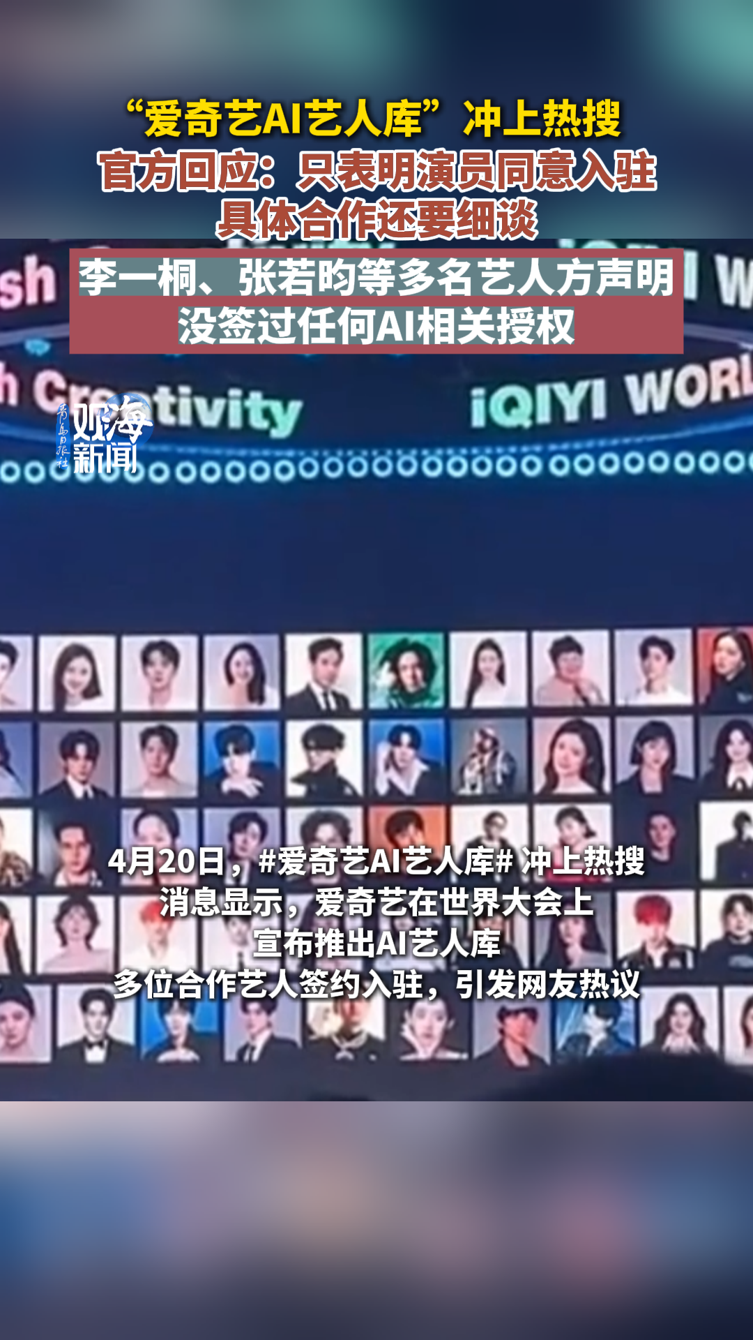 “爱奇艺AI艺人库”冲上热搜,官方回应:只表明演员同意入驻,具体合作还要细谈