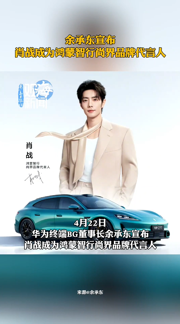 余承东宣布肖战成为鸿蒙智行尚界品牌代言人