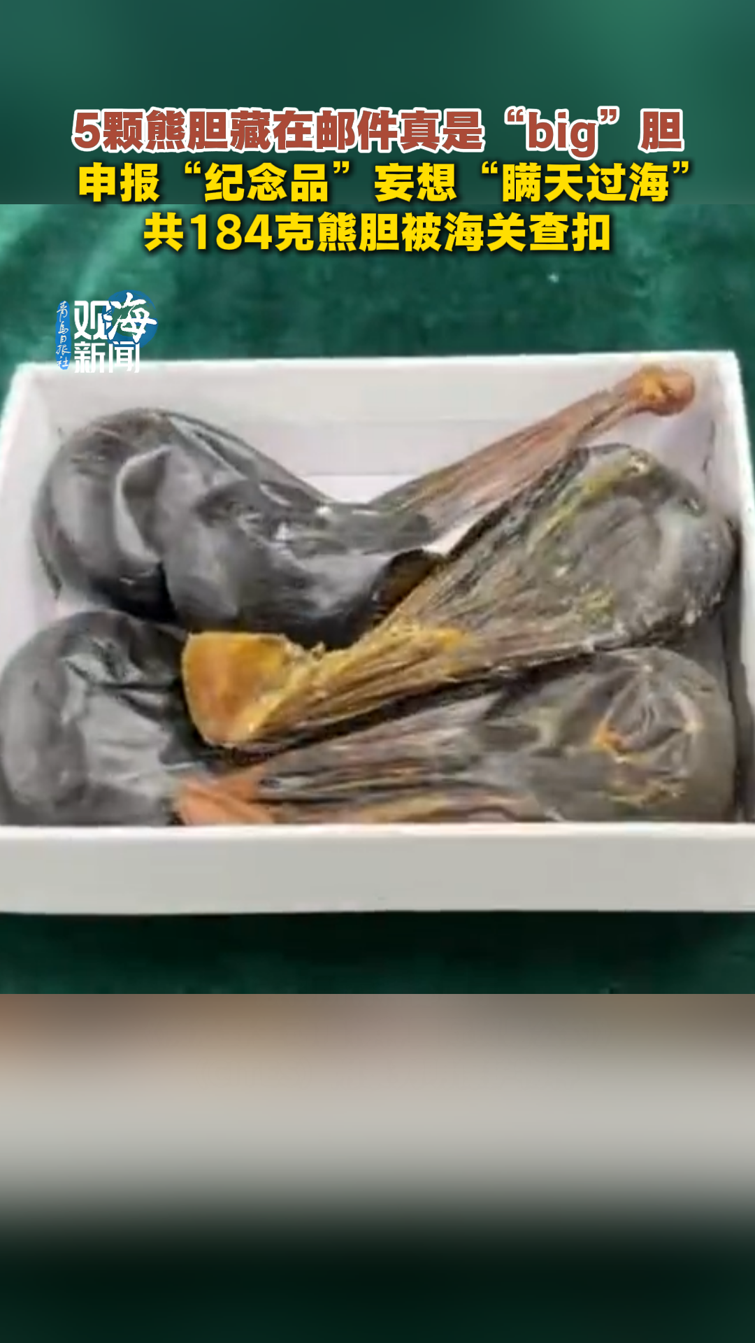 “big”胆!申报“纪念品”妄想“瞒天过海”,184克熊胆被海关查扣