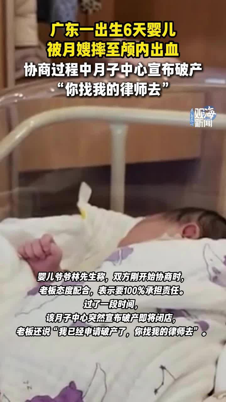 广东一出生6天婴儿被月嫂摔至颅内出血,协商过程中月子中心宣布破产,月子中心老板:“你找我的律师去”