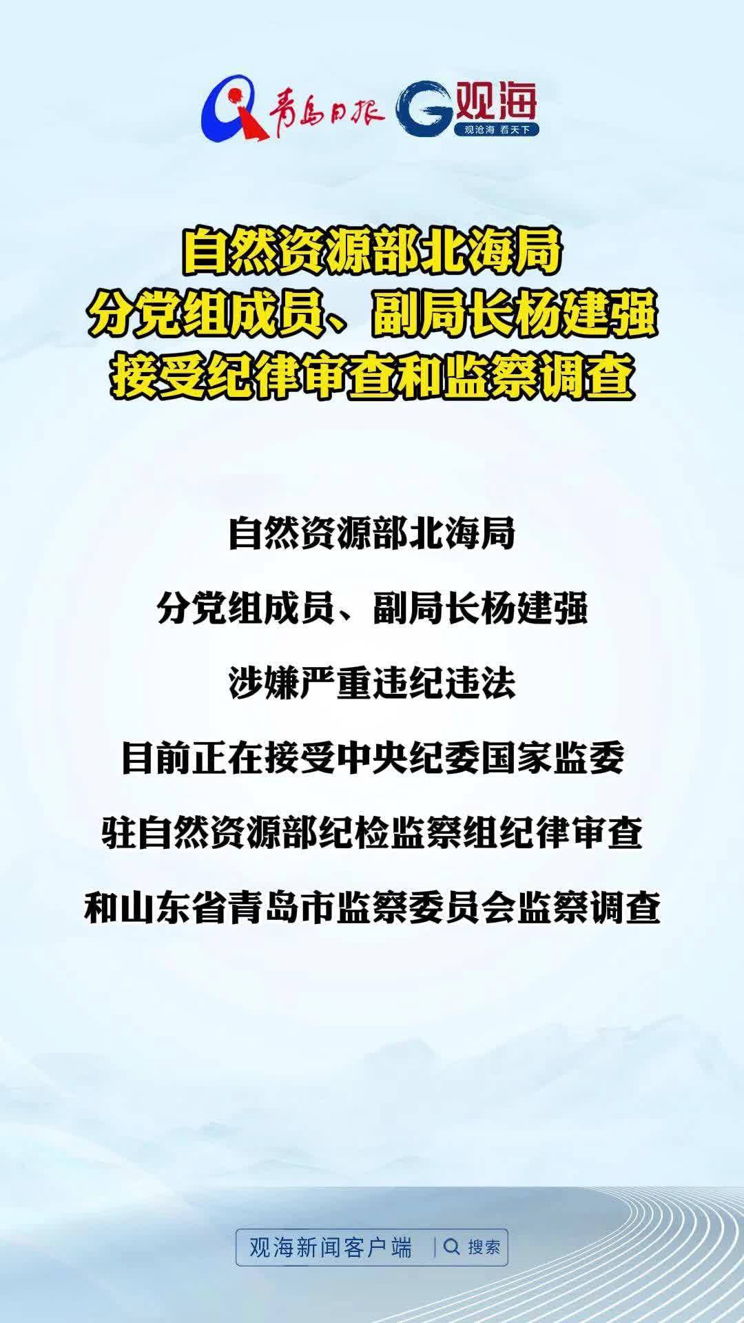 自然资源部北海局分党组成员、副局长杨建强接受纪律审查和监察调查