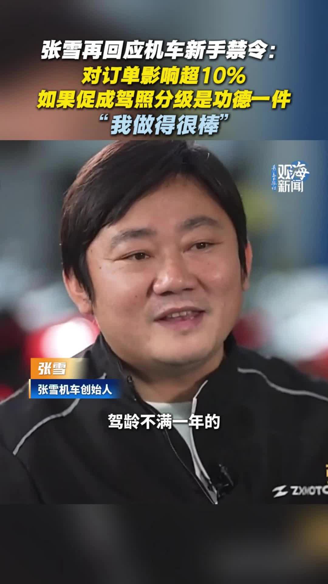 张雪再回应机车新手禁令:对订单影响超10%,如果促成驾照分级是功德一件,“我做得很棒”