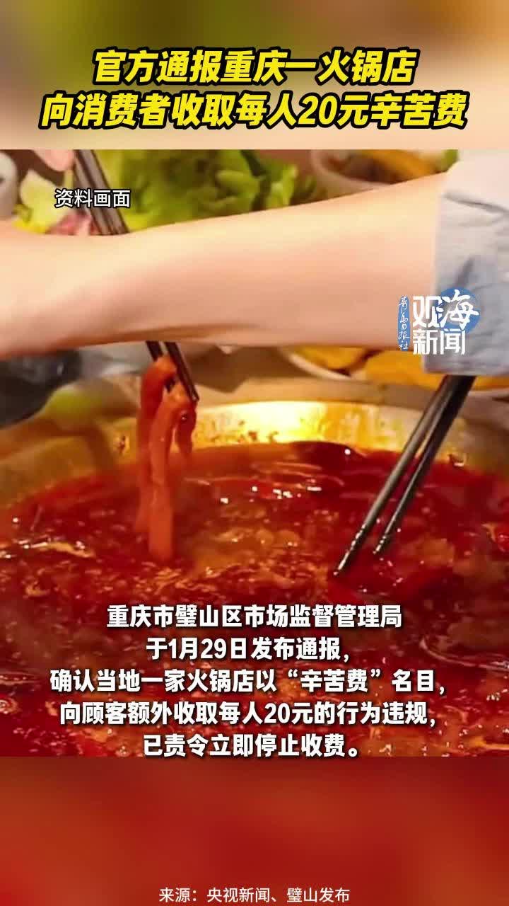 官方通报重庆一火锅店向消费者收取每人20元辛苦费