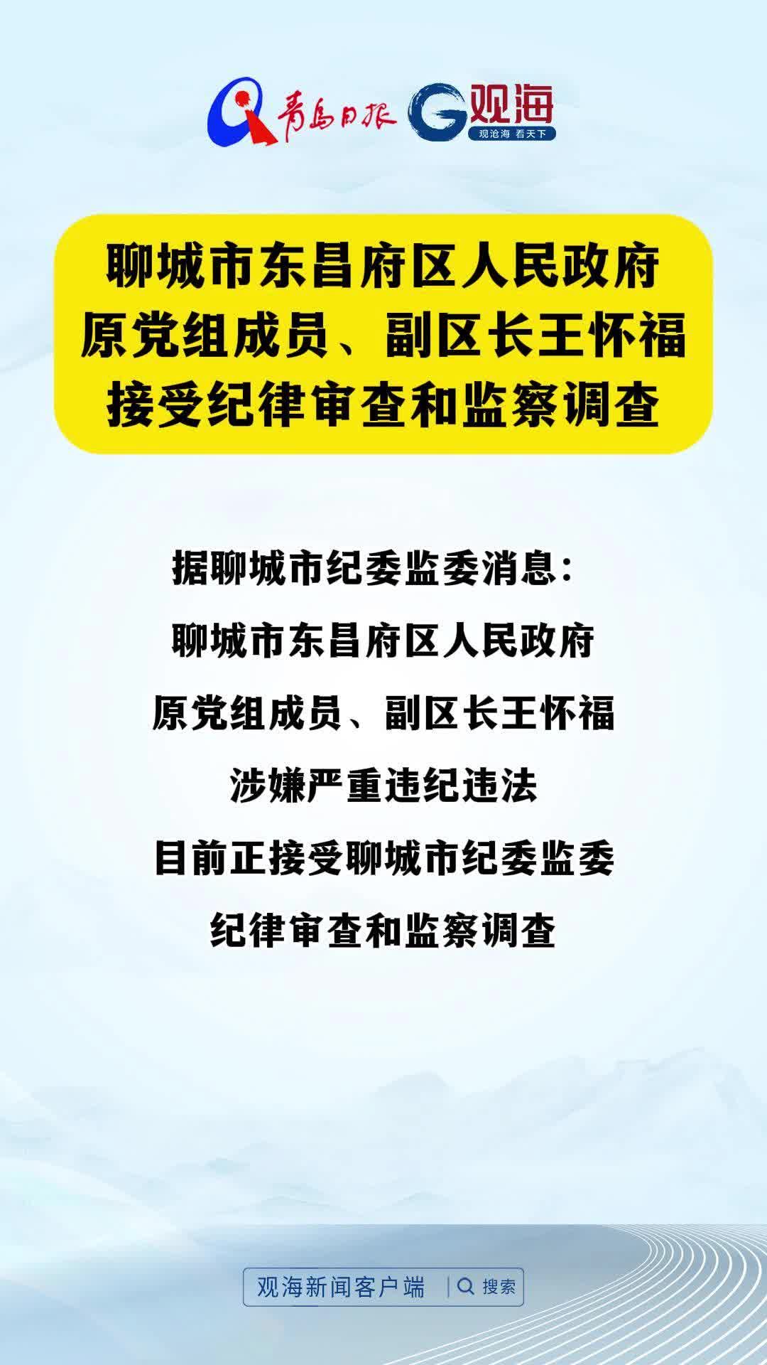 聊城市东昌府区人民政府原党组成员、副区长王怀福接受纪律审查和监察调查