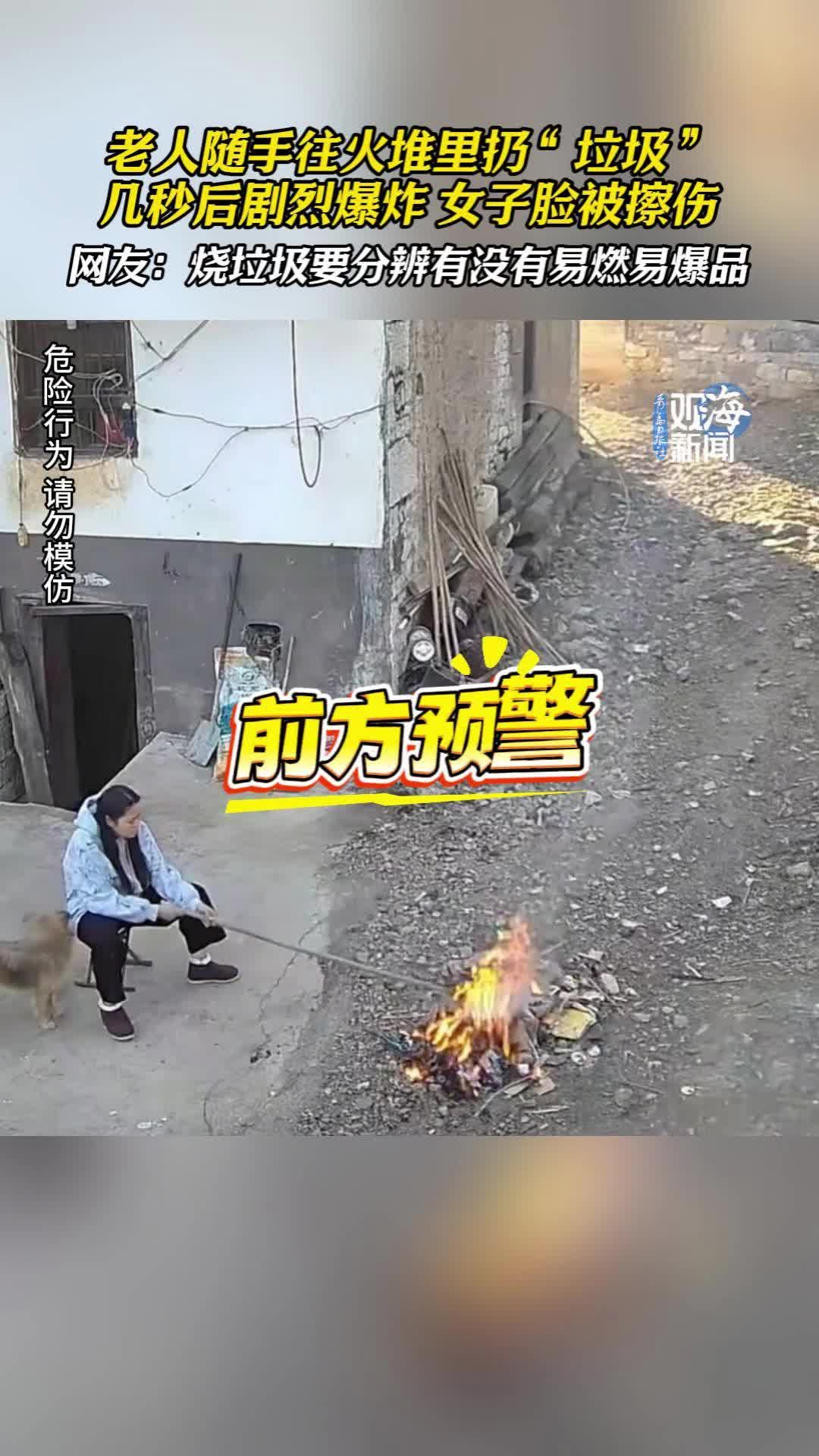 老人随手往火堆里扔“垃圾”,几秒后剧烈爆炸,女子脸被擦伤