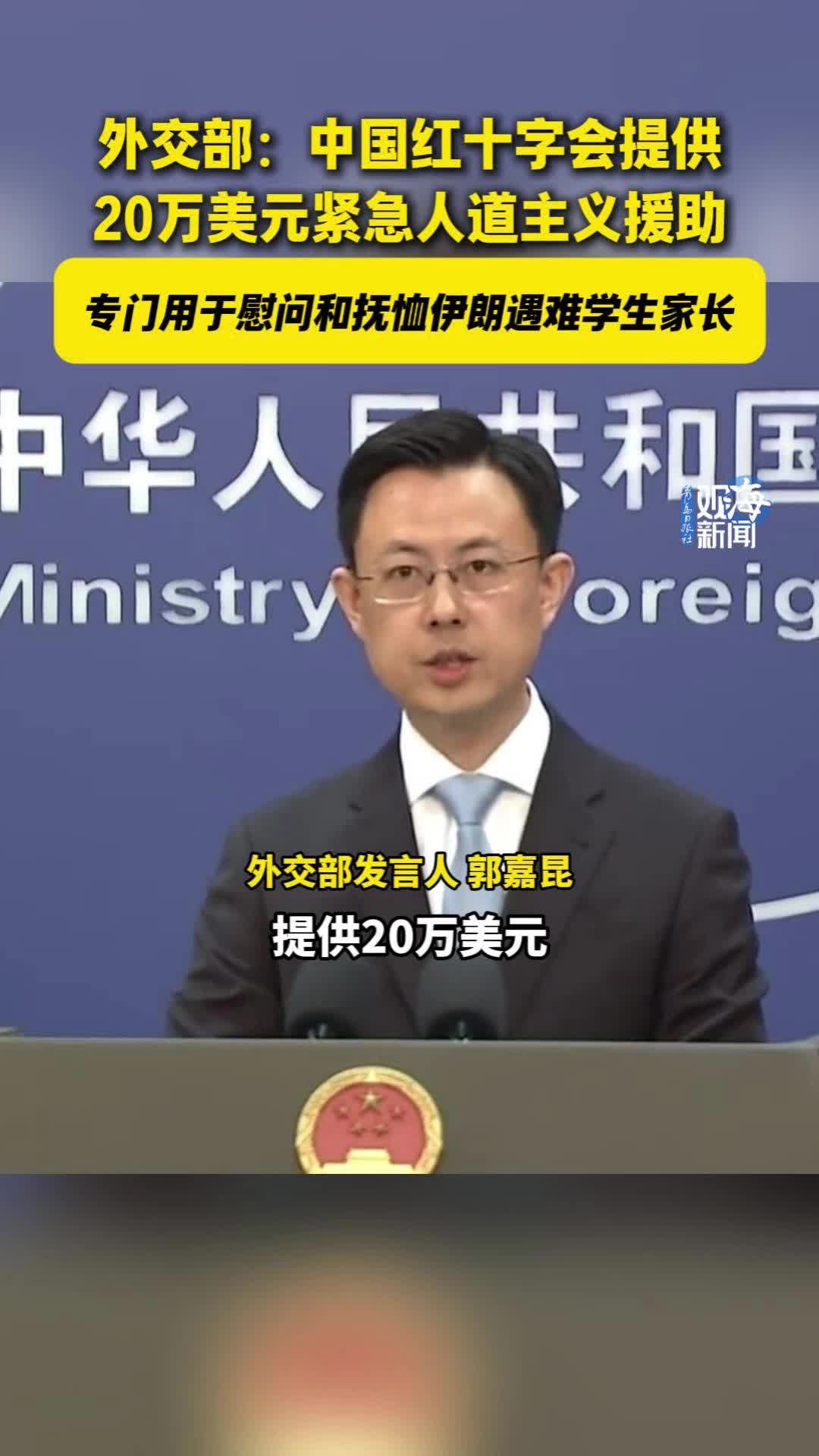外交部:中国红十字会提供20万美元紧急人道主义援助,专门用于慰问和抚恤伊朗遇难学生家长
