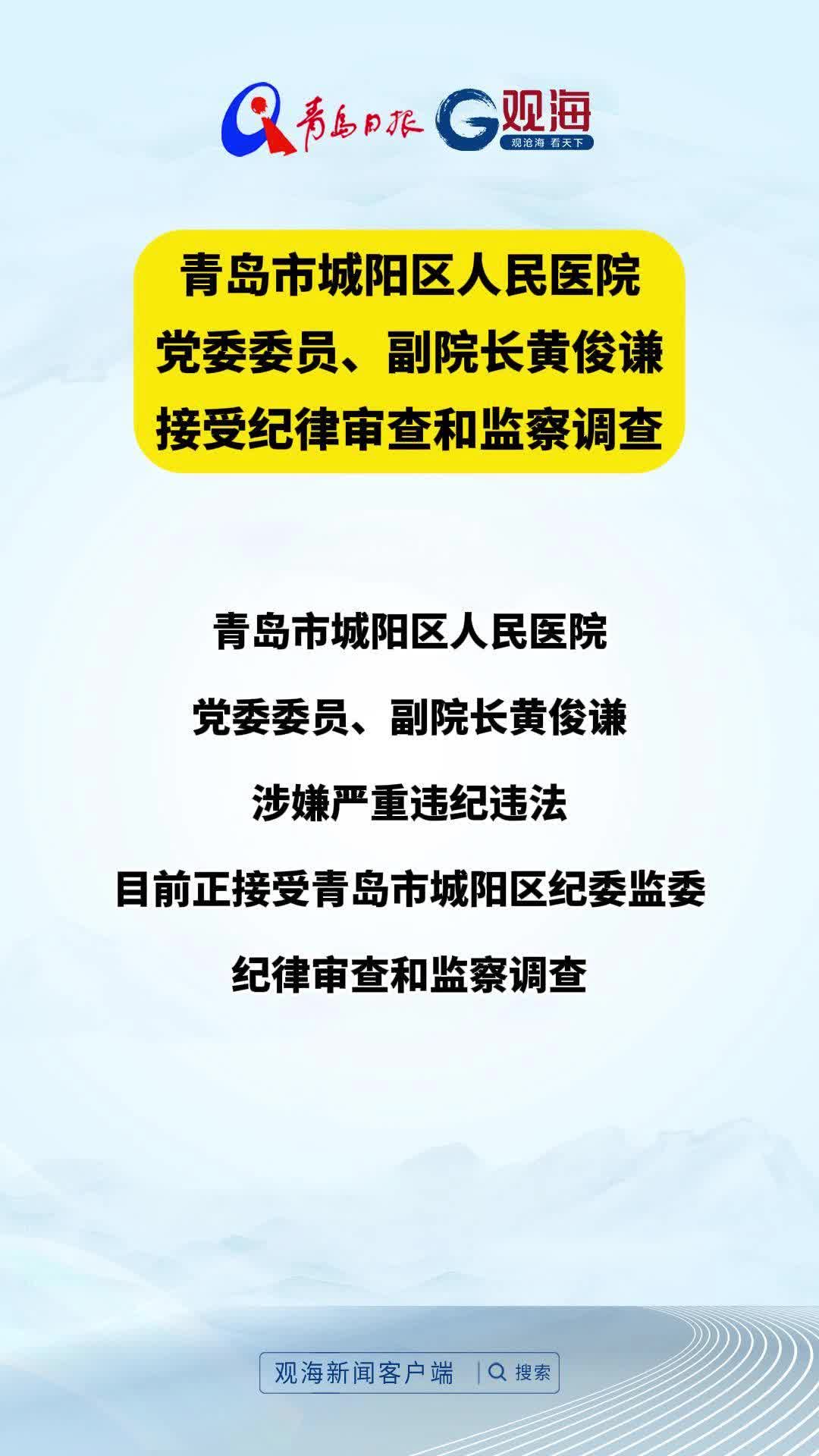 青岛市城阳区人民医院党委委员、副院长黄俊谦接受纪律审查和监察调查