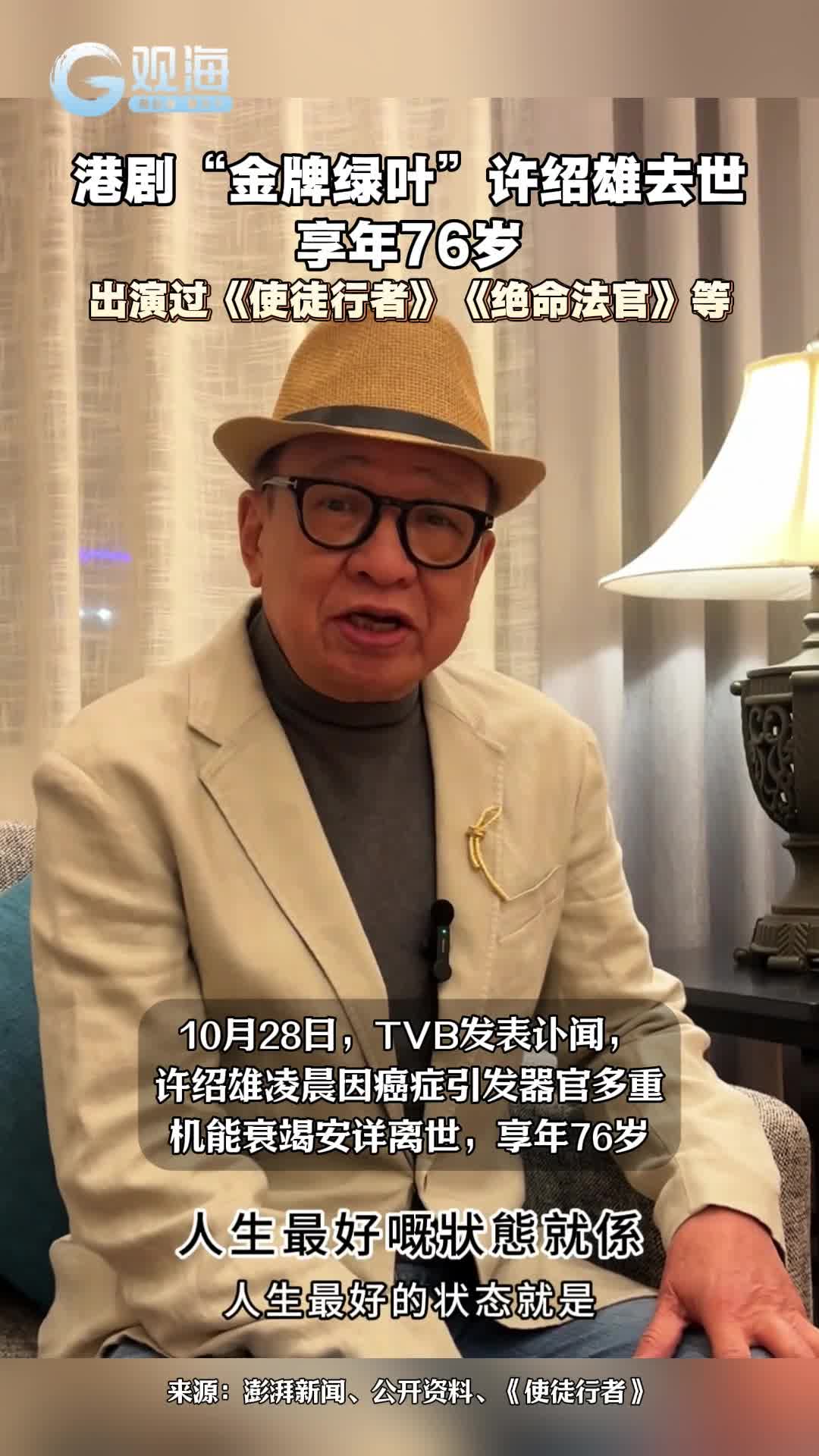 港剧“金牌绿叶”许绍雄去世,享年76岁