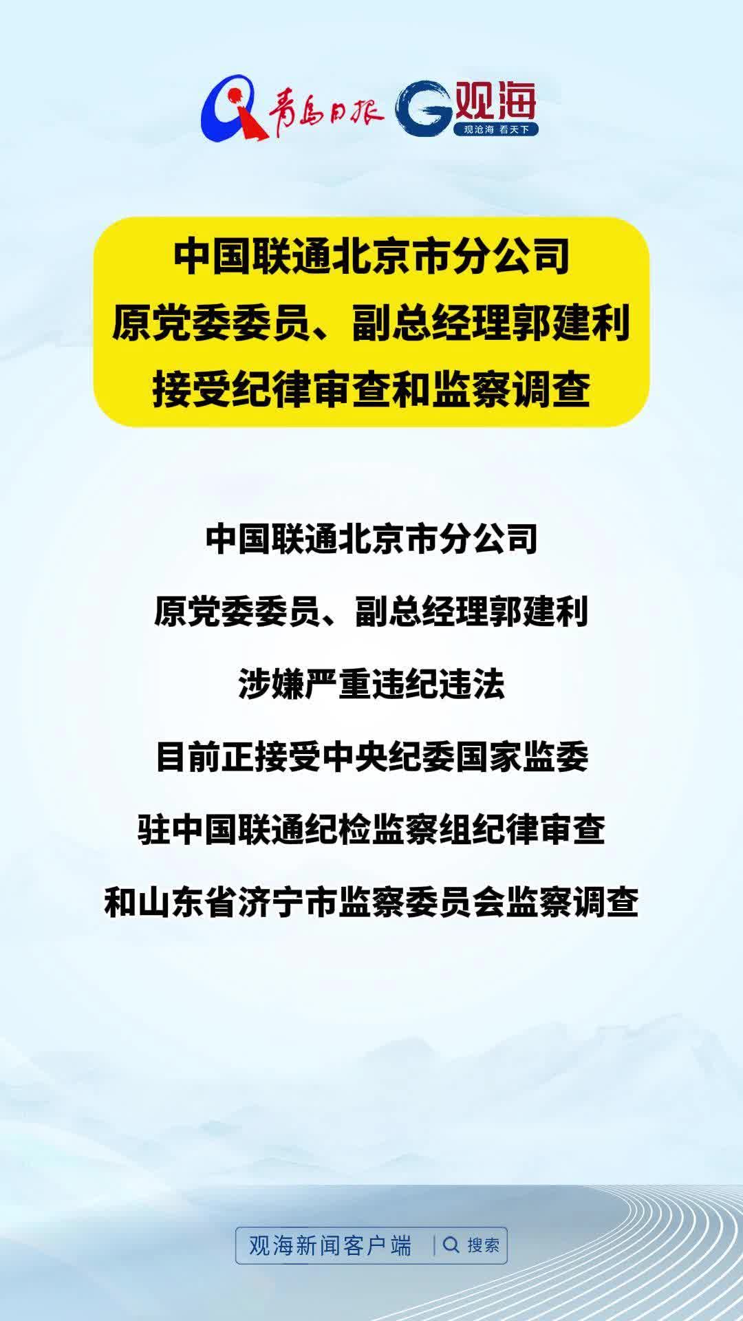 中国联通北京市分公司原党委委员、副总经理郭建利接受纪律审查和监察调查