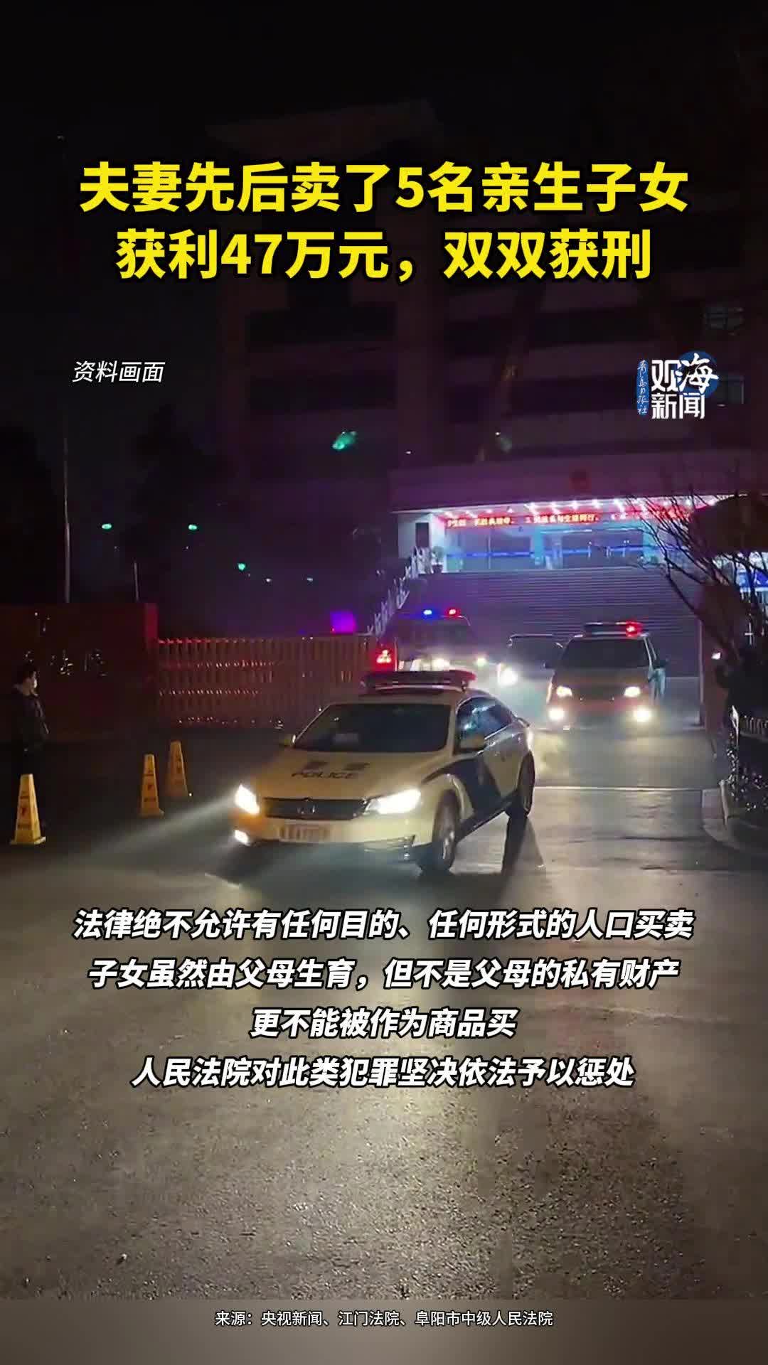 夫妻先后卖了5名亲生子女,获利47万元,双双获刑