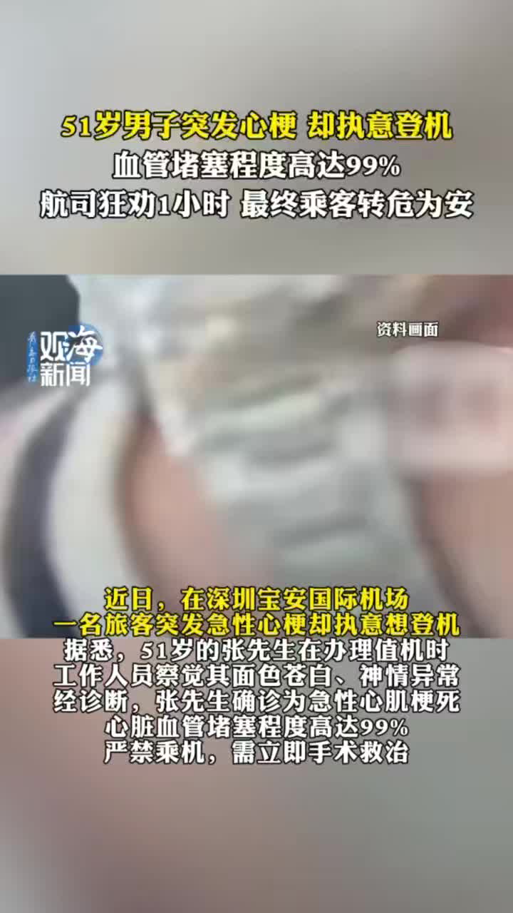 51岁男子突发心梗却执意登机,航司狂劝1小时,最终乘客转危为安