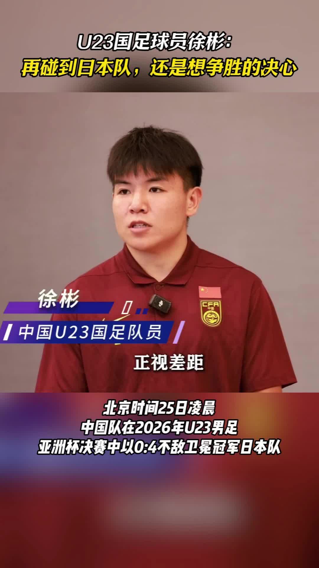 U23国足球员徐彬:再碰到日本队,还是有争胜的决心