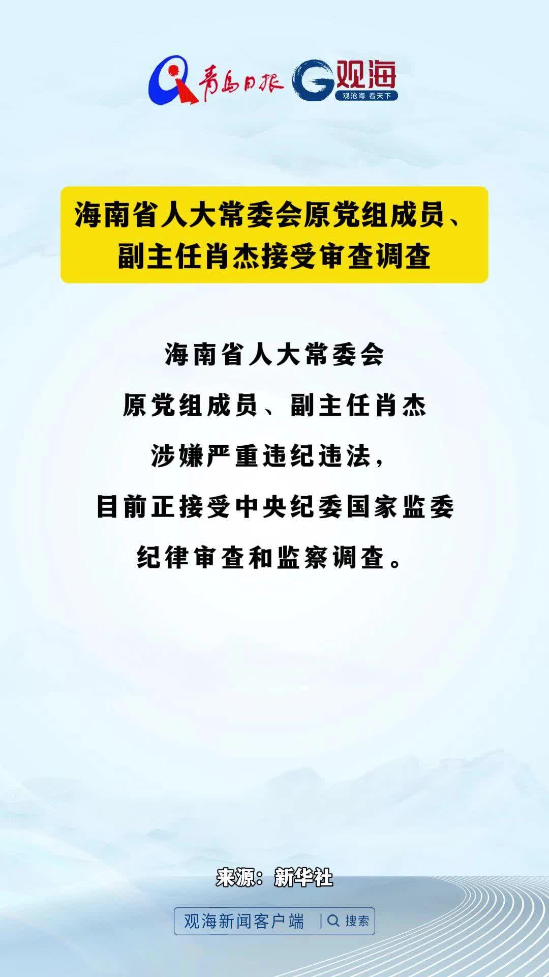 海南省人大常委会原党组成员、副主任肖杰接受审查调查