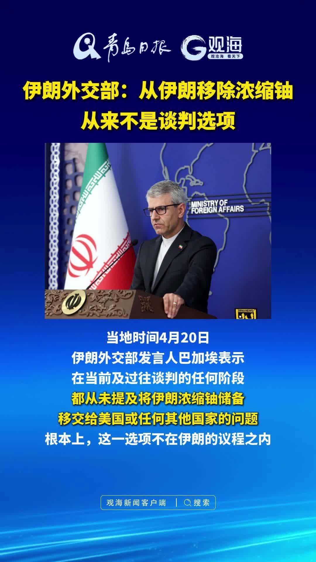 伊朗外交部:从伊朗移除浓缩铀从来不是谈判选项
