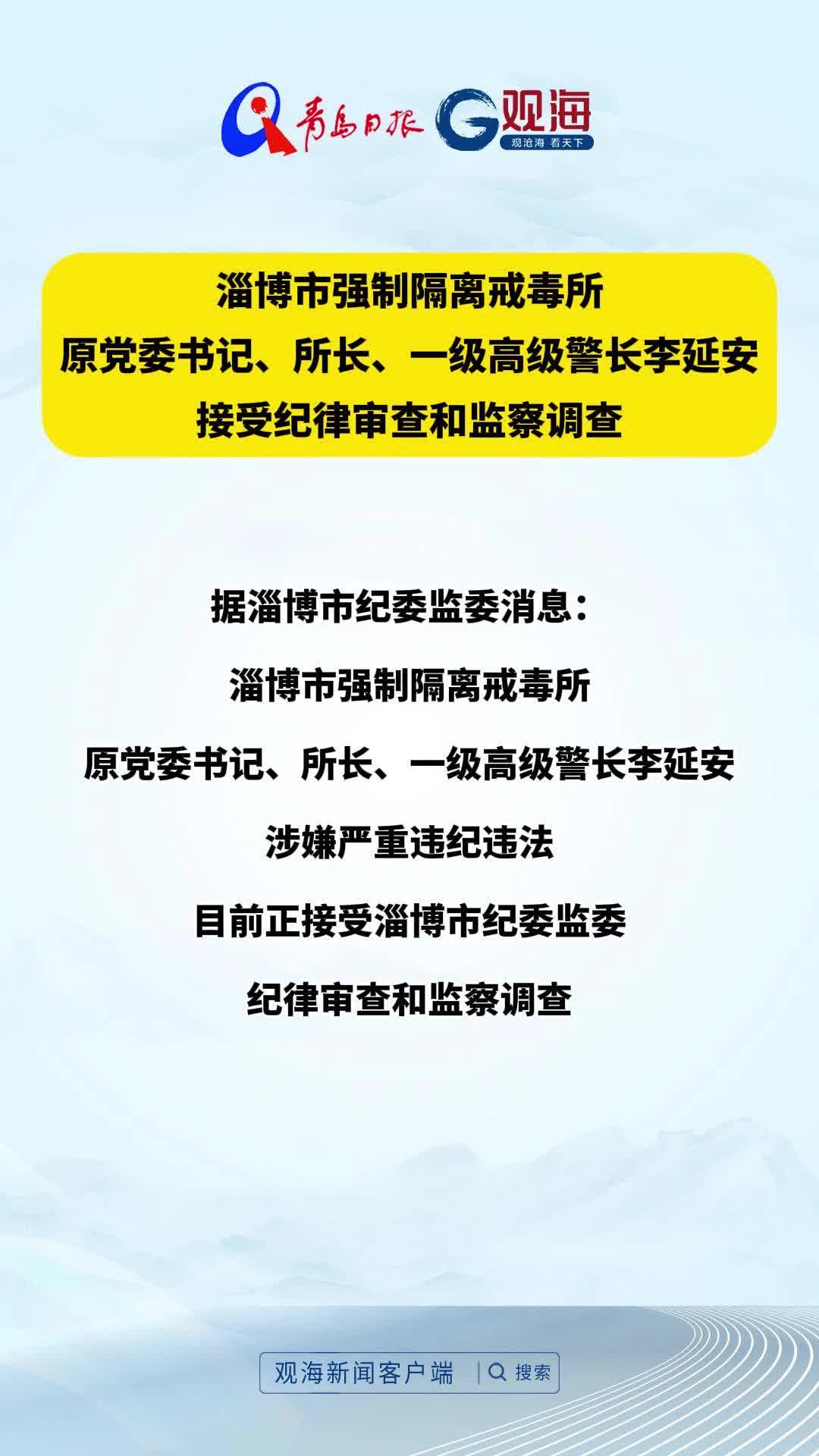 淄博市强制隔离戒毒所原党委书记、所长、一级高级警长李延安接受纪律审查和监察调查
