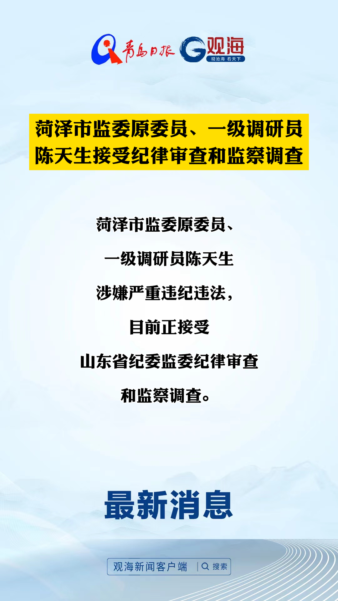 菏泽市监委原委员、一级调研员陈天生接受纪律审查和监察调查