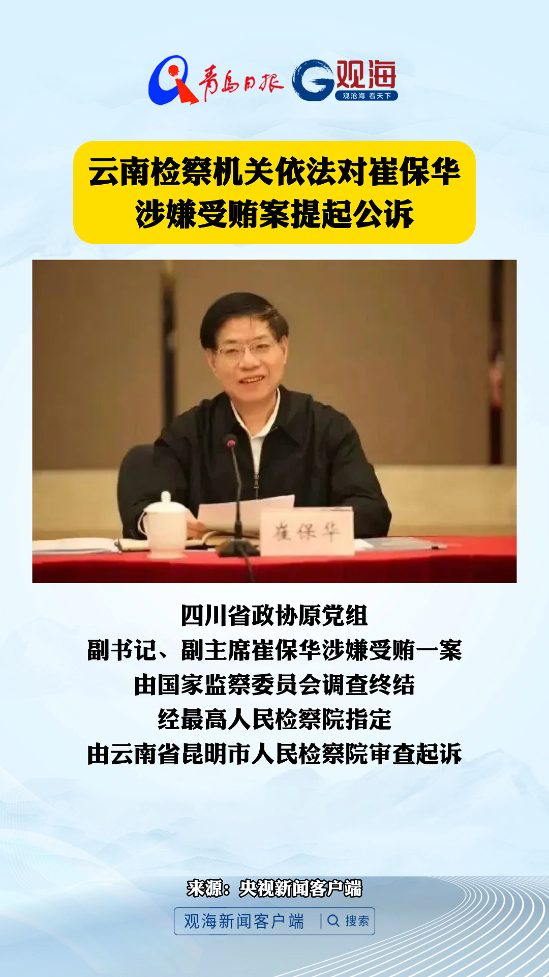 云南检察机关依法对崔保华涉嫌受贿案提起公诉