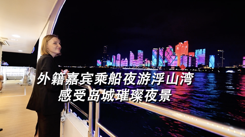 外籍嘉宾乘船夜游浮山湾,感受岛城璀璨夜景