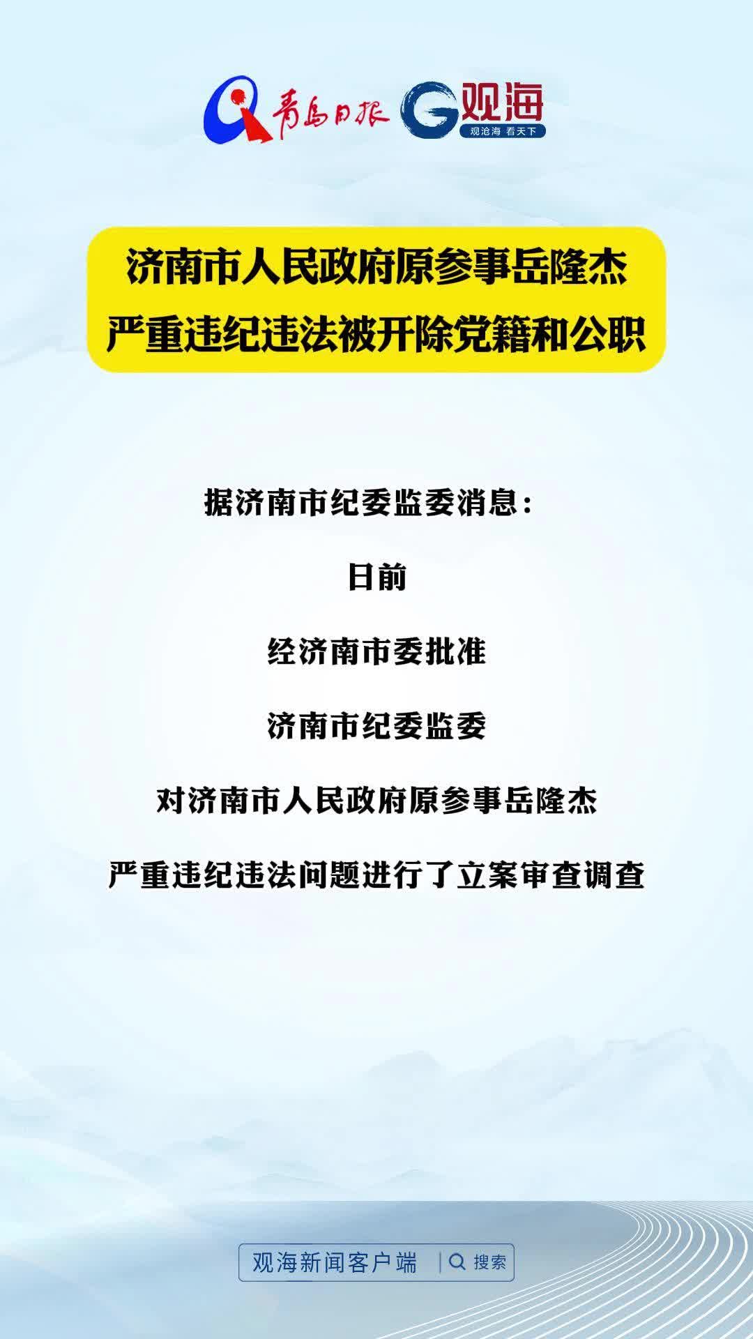 济南市人民政府原参事岳隆杰严重违纪违法被开除党籍和公职