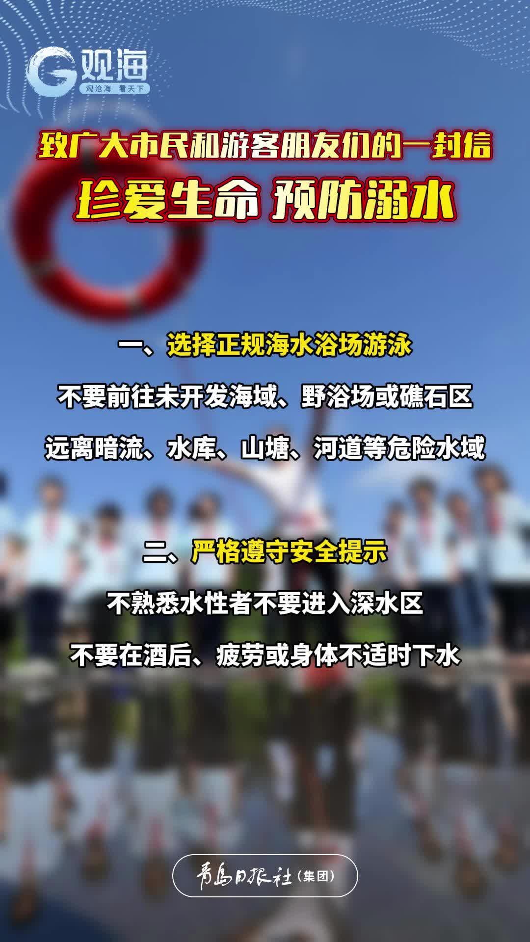 珍爱生命 预防溺水——致广大市民和游客朋友们的一封信