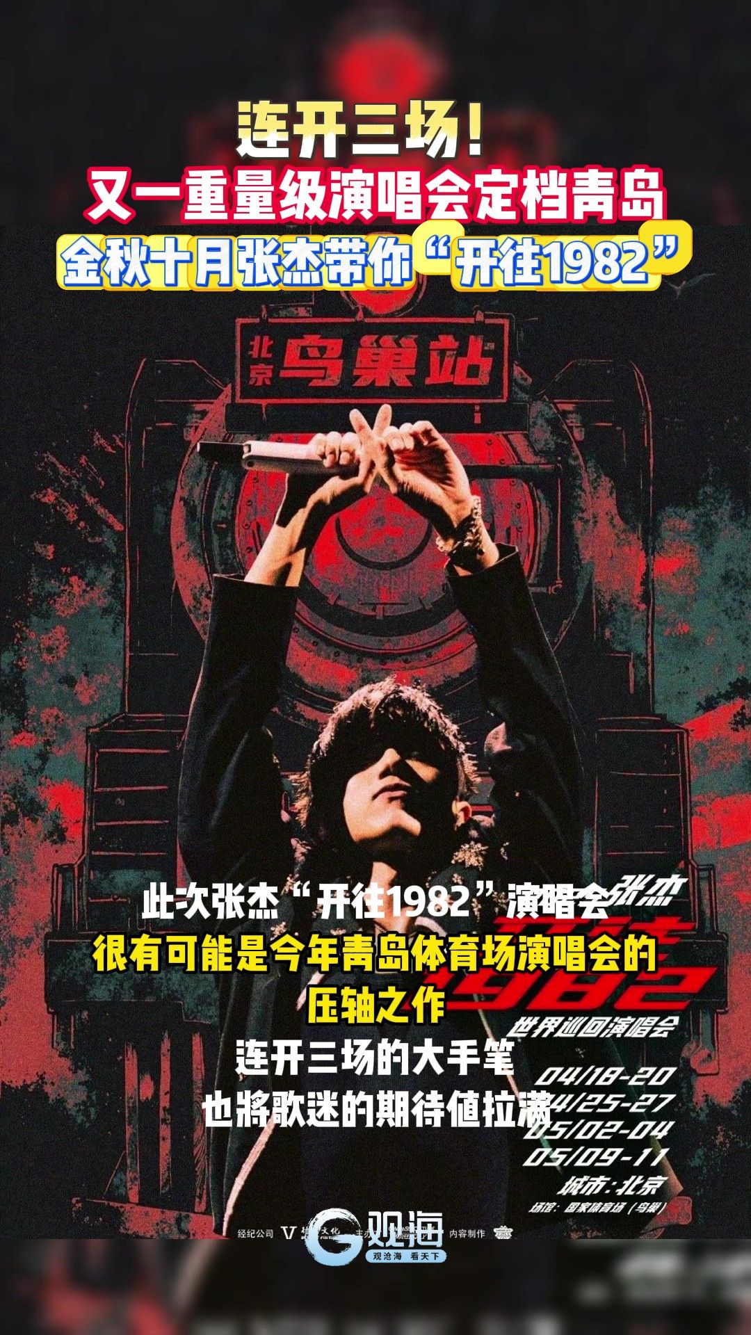连开三场!又一重量级演唱会定档青岛,金秋十月张杰带你“开往1982”!