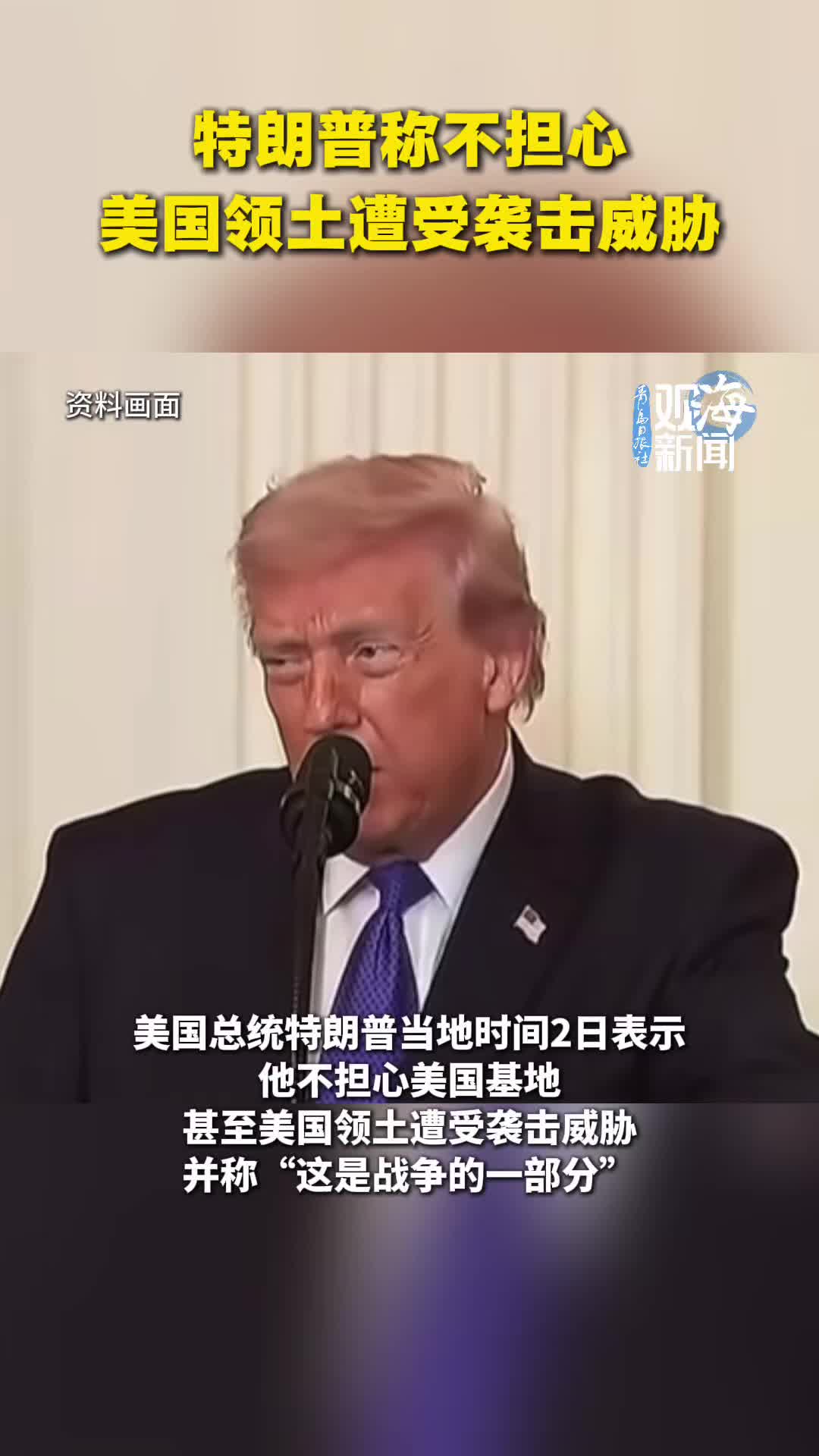特朗普称不担心美国领土遭受袭击威胁