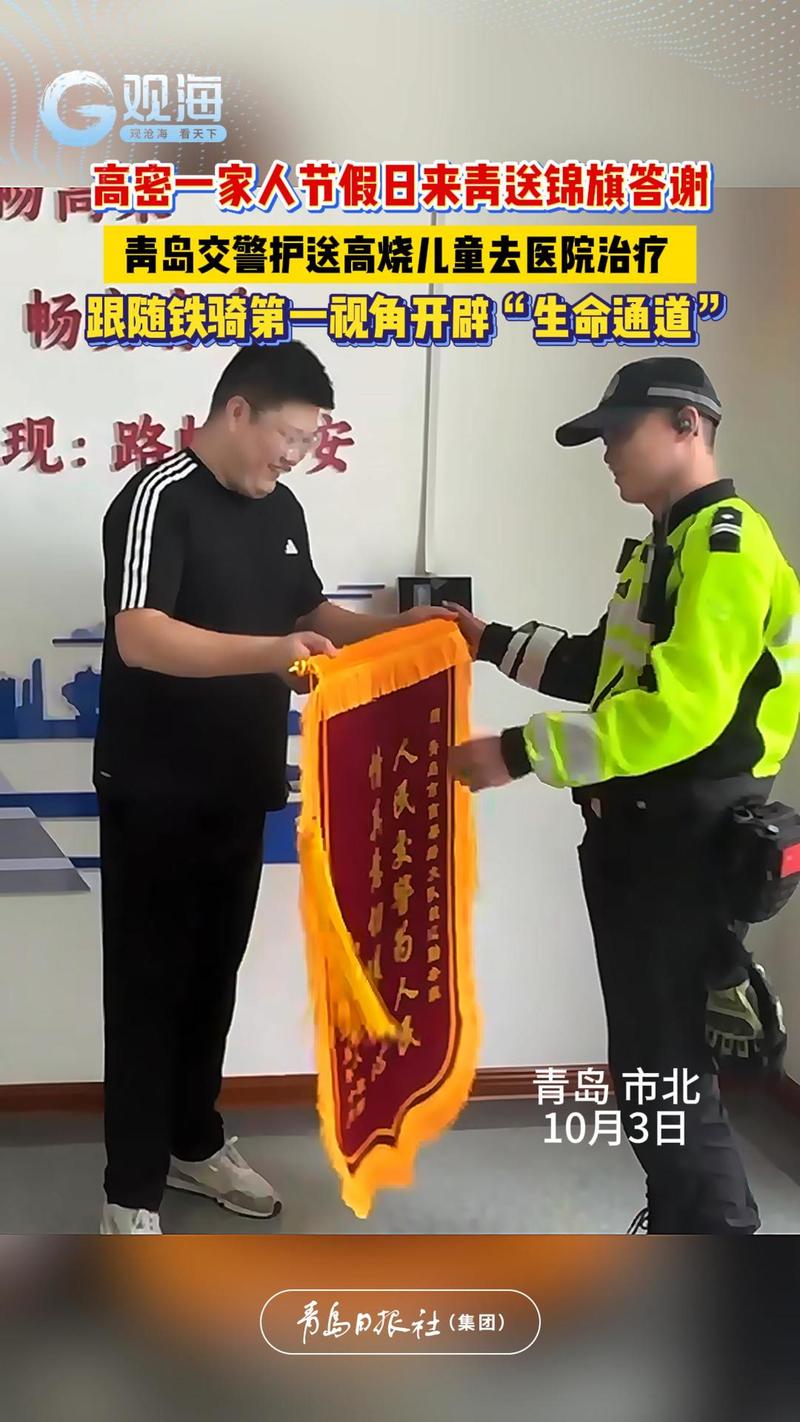 高密一家人赴青送锦旗,答谢交警“生命通道”救命情