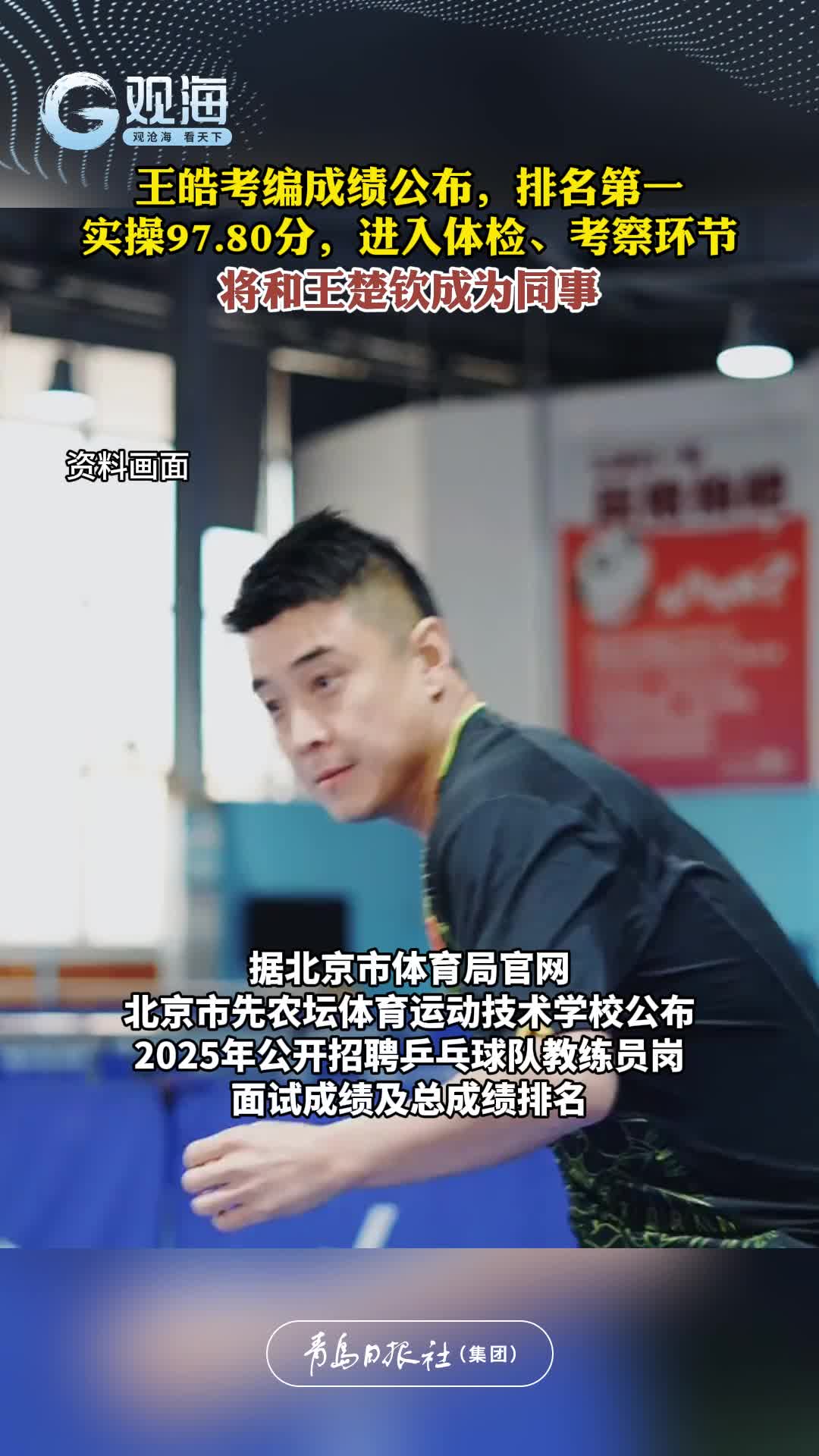 王皓考编成绩公布,排名第一!将和王楚钦成为同事
