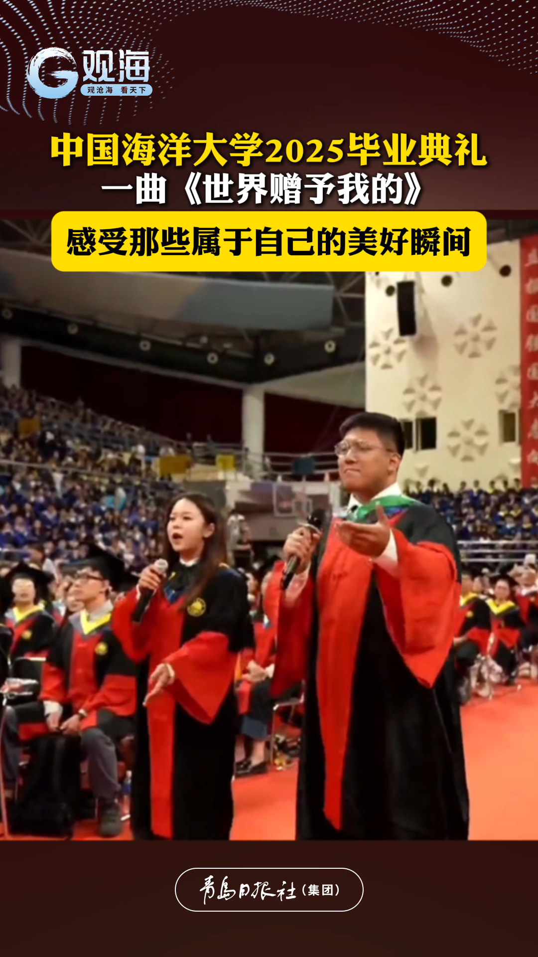 中国海洋大学2025届研究生毕业典礼,一曲《世界赠予我的》:感受那些属于自己的美好瞬间