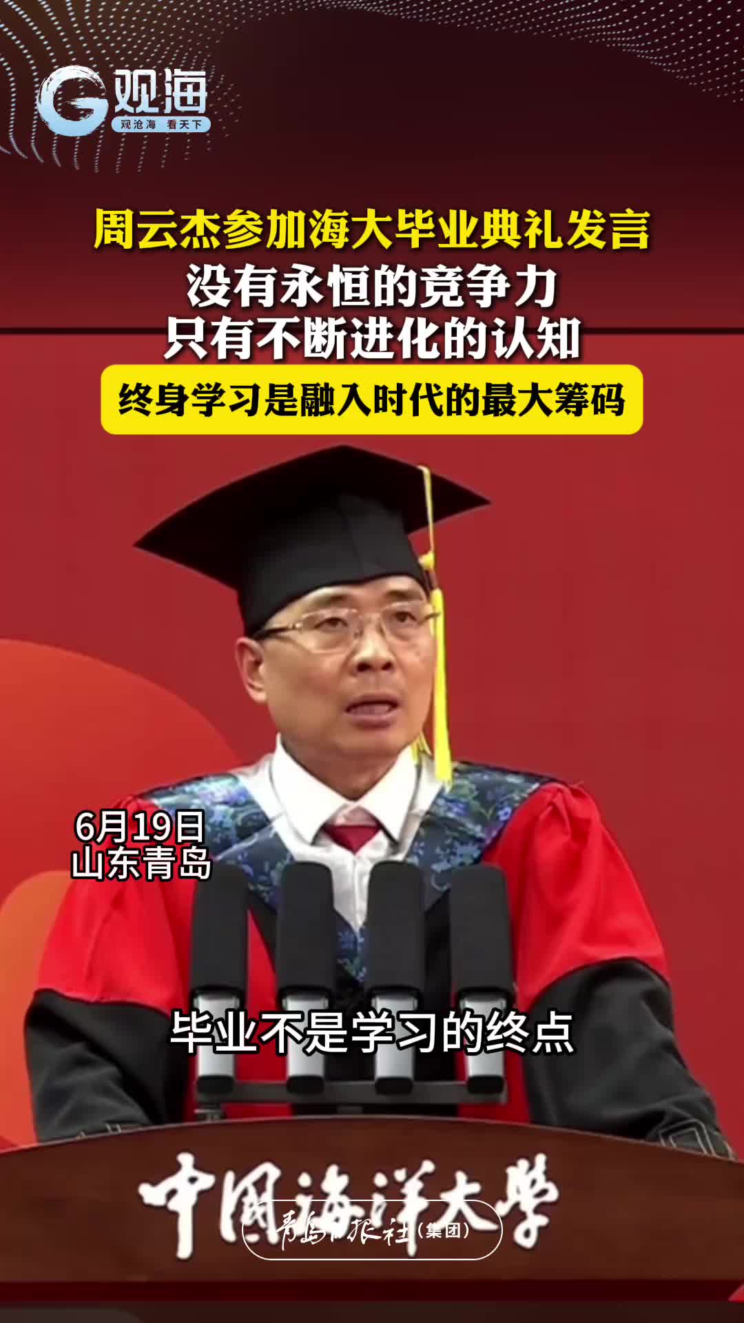 周云杰参加中国海洋大学2025届研究生毕业典礼发言:选择与优秀者同行,你的认知边界才会被不断拓展