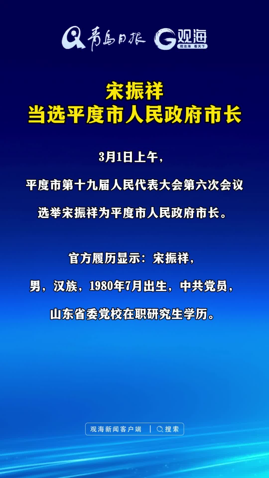 宋振祥当选平度市人民政府市长