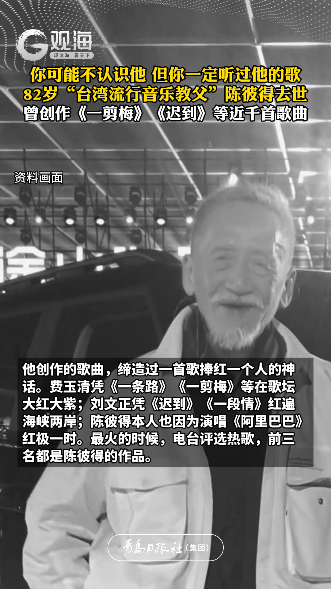 82岁“台湾流行音乐教父”陈彼得去世,曾创作《一剪梅》《迟到》等近千首歌曲 青岛市