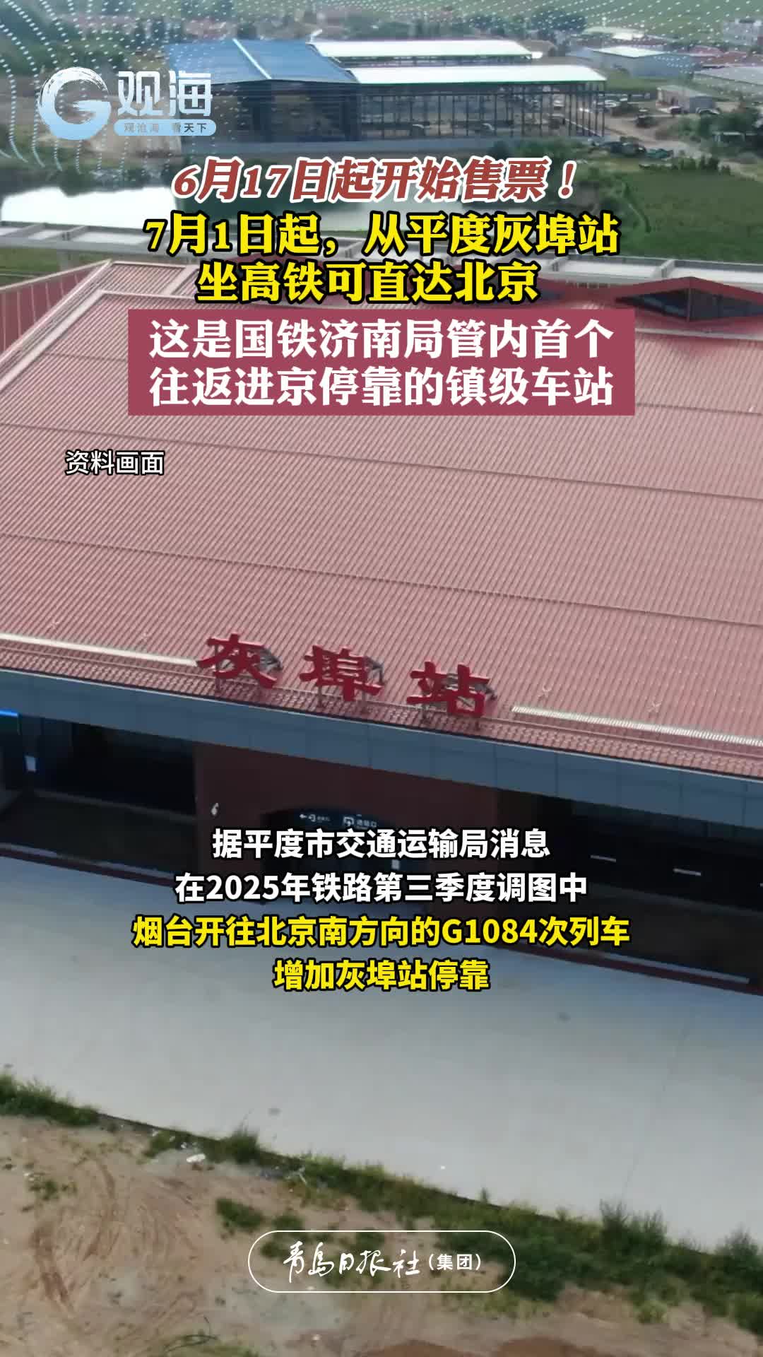 今天开始售票!7月1日起,从平度灰埠站坐高铁可直达北京