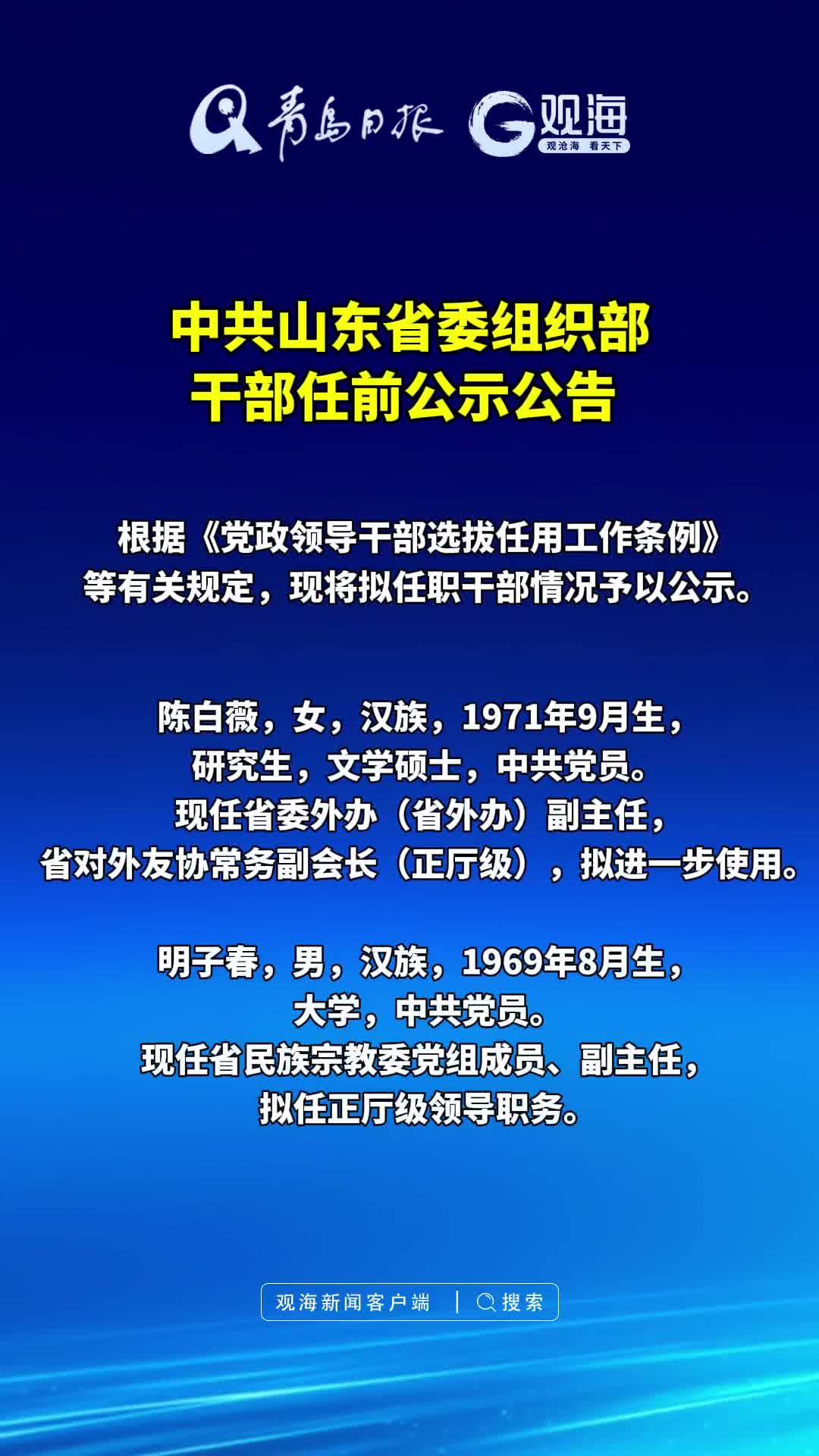 中共山东省委组织部干部任前公示公告